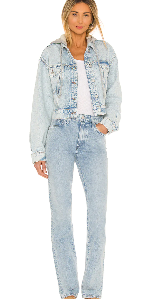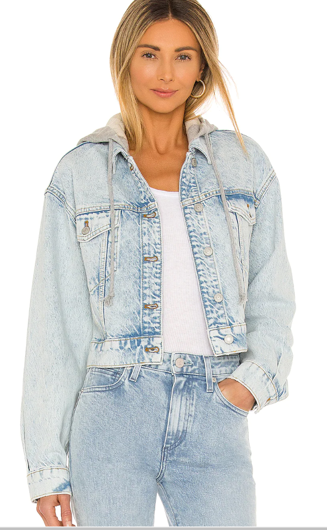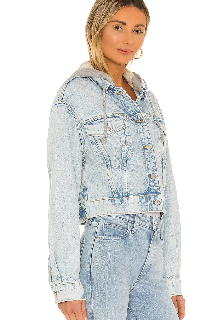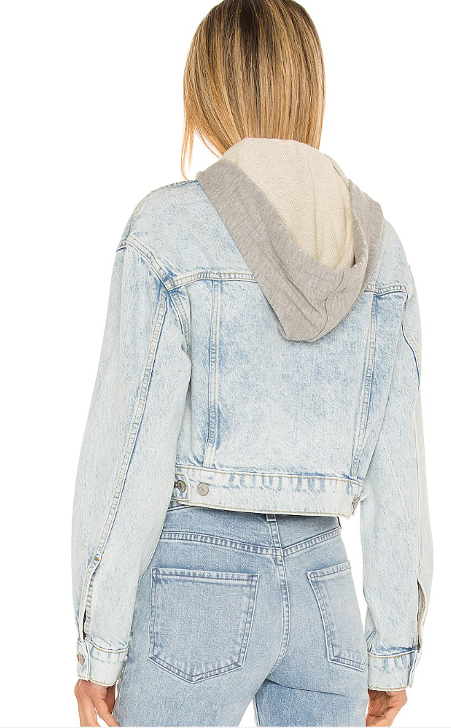 *The denim jacket gets redefined with a comfy hood and urbanized cut *Attached hood detail for a layered look *Long sleeves *Front button closures *Contrast stitching throughout *Boxy cropped silhouette *Denim construction *57% cotton 43% Lyocell *Machine wash cold.