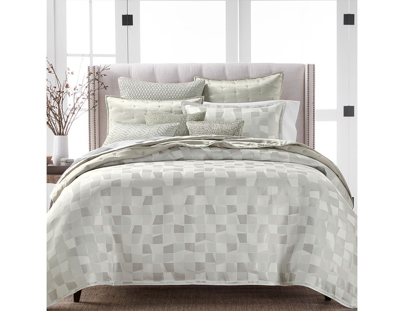 Hudson Park Collection Facets Duvet Cover Set, King, Light Gray