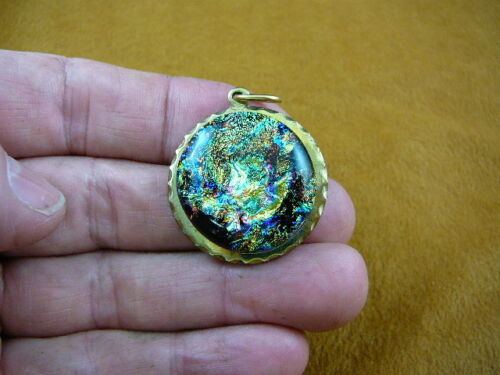(#DB-706) DICHROIC GLASS brass Pendant JEWELRY GREEN BLUE YELLOW