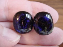 (Internal #DE18-4) This is a beautiful pair of metallic blue color with black background dichroic glass post earrings with hypoallergenic surgical steel posts with comfort clutch backs.