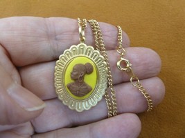 (CA30-19) RARE African American LADY yellow + brown CAMEO brass Pendant necklace