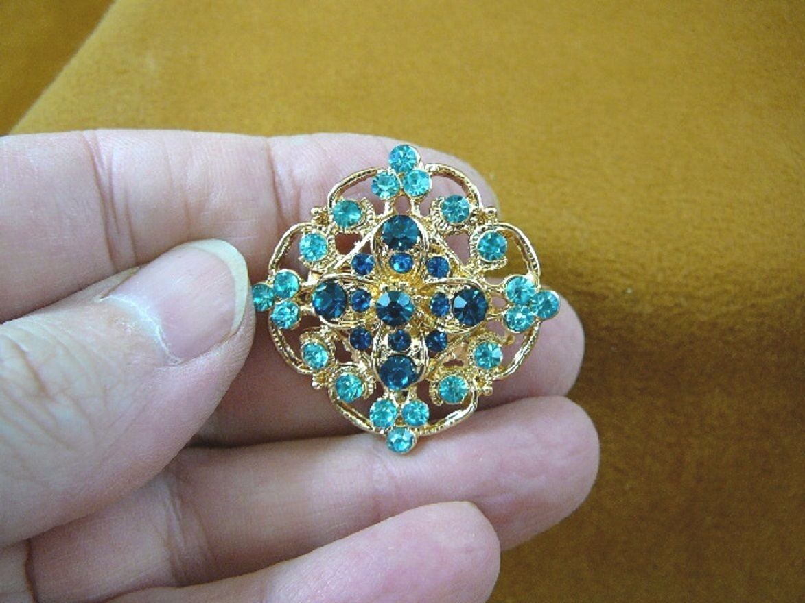(bb601-42) blue rhinestone crystal ornate scrolled flower gold tone brooch pin