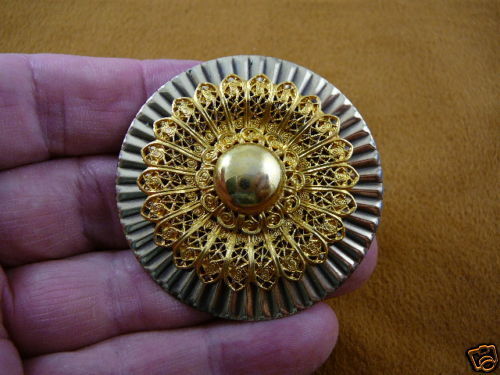 (br-207) Flower gold tone filigree brass circle pin pendant Wow