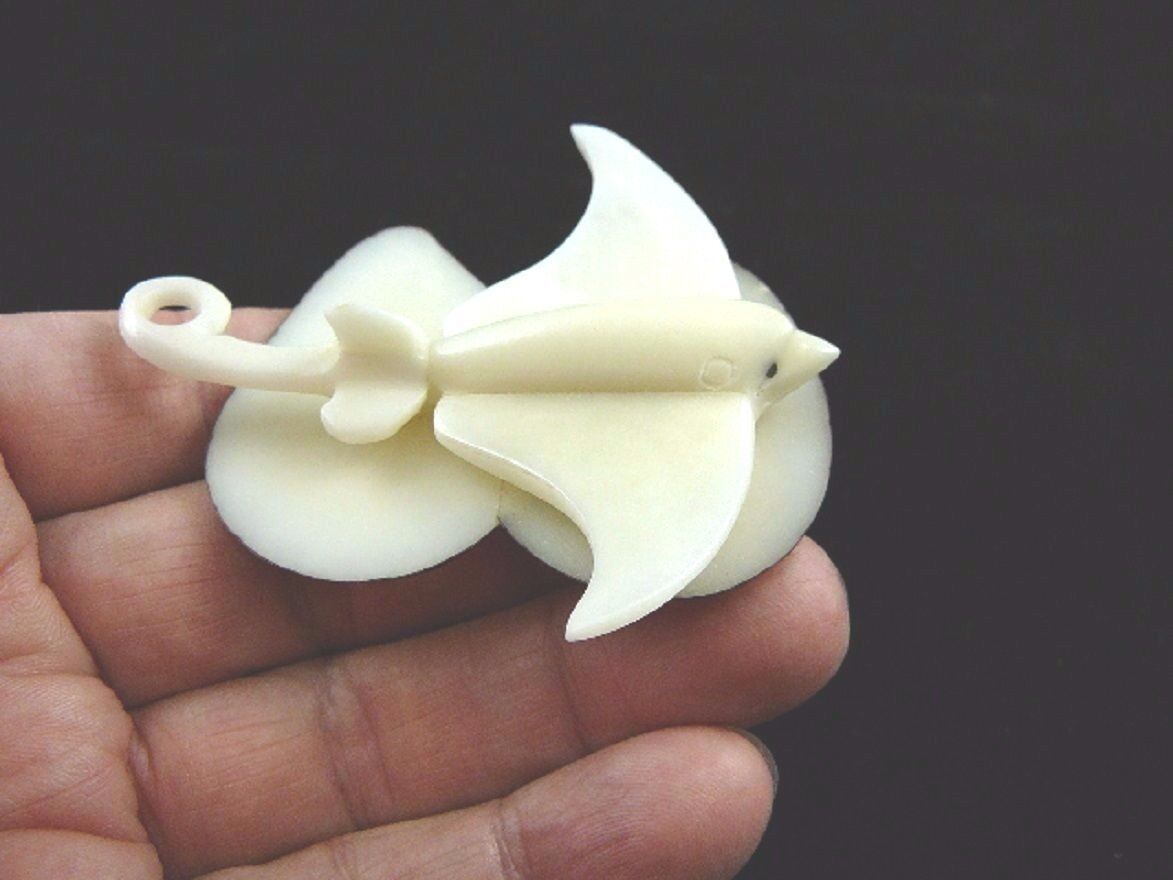 TNE-STI-407-B) Manta ray TAGUA NUT vegetable palm figurine carving stingray raja