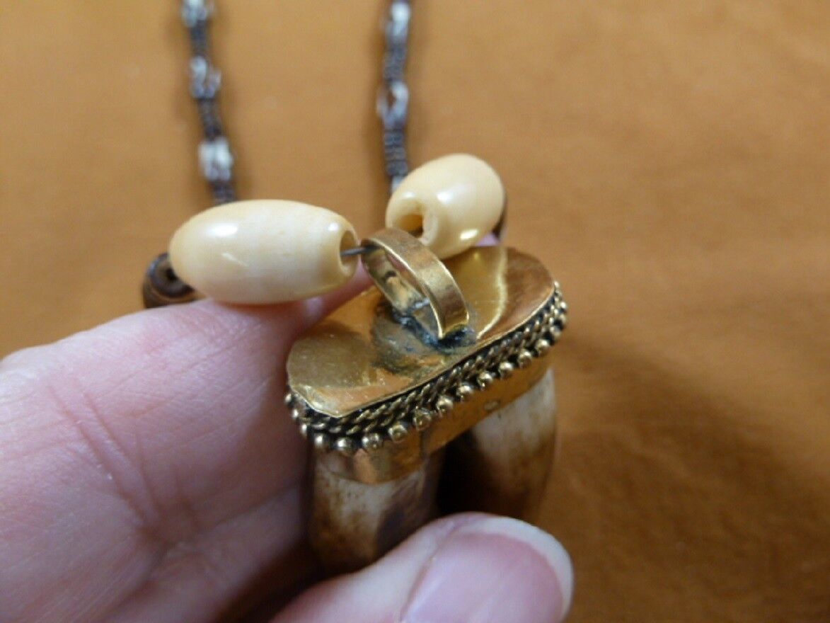 TIBETAN WATER BUFFALO aceh BONE PENDANT - Brass capped, each one unique; antiqued bone