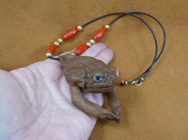 EL1000-8) genuine Cane TOAD Leather pendant 20" red beaded necklace I love toads