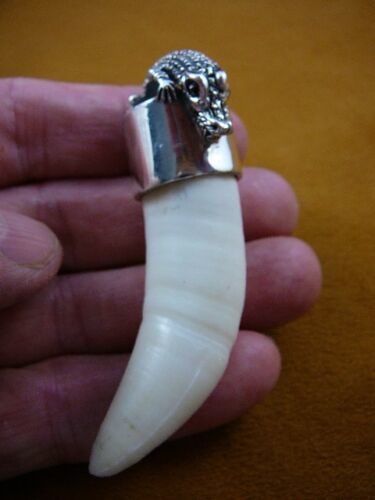(G963-20-2) Big LARGE 3-1/8" GATOR Alligator Tooth SILVER CAP gators Pendant