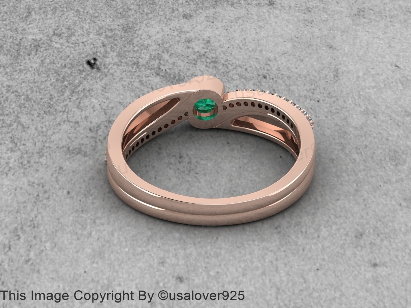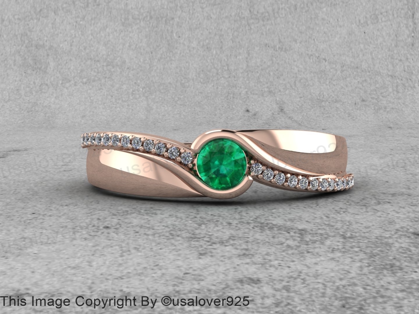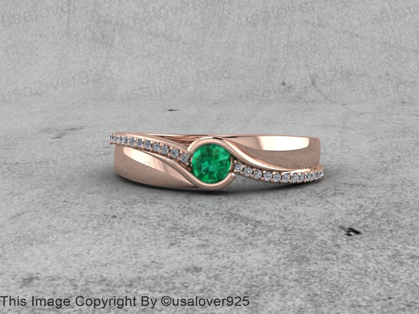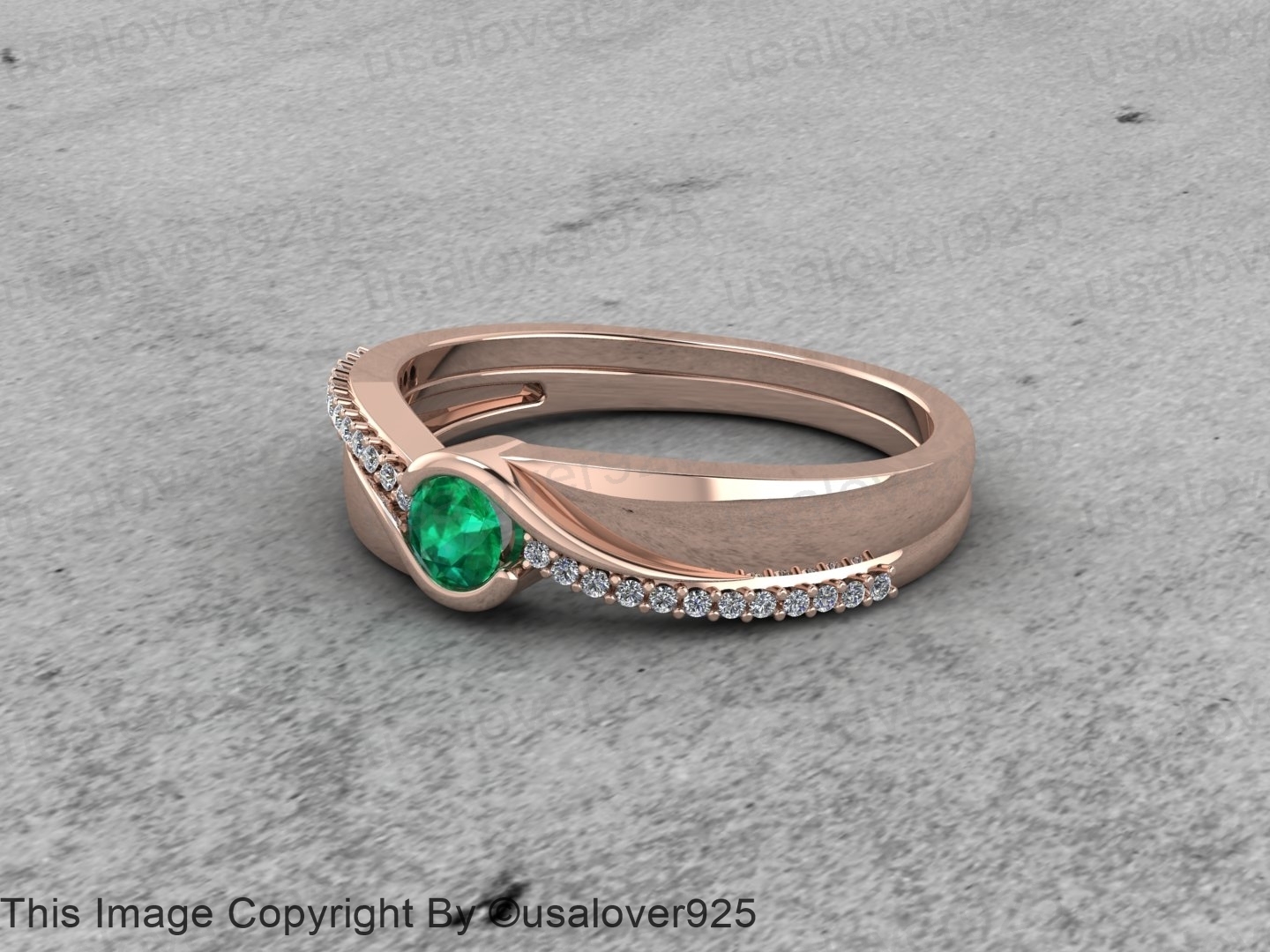 Natural Green Emerald And CZ Diamond Gemstone Sterling Silver Women Ring