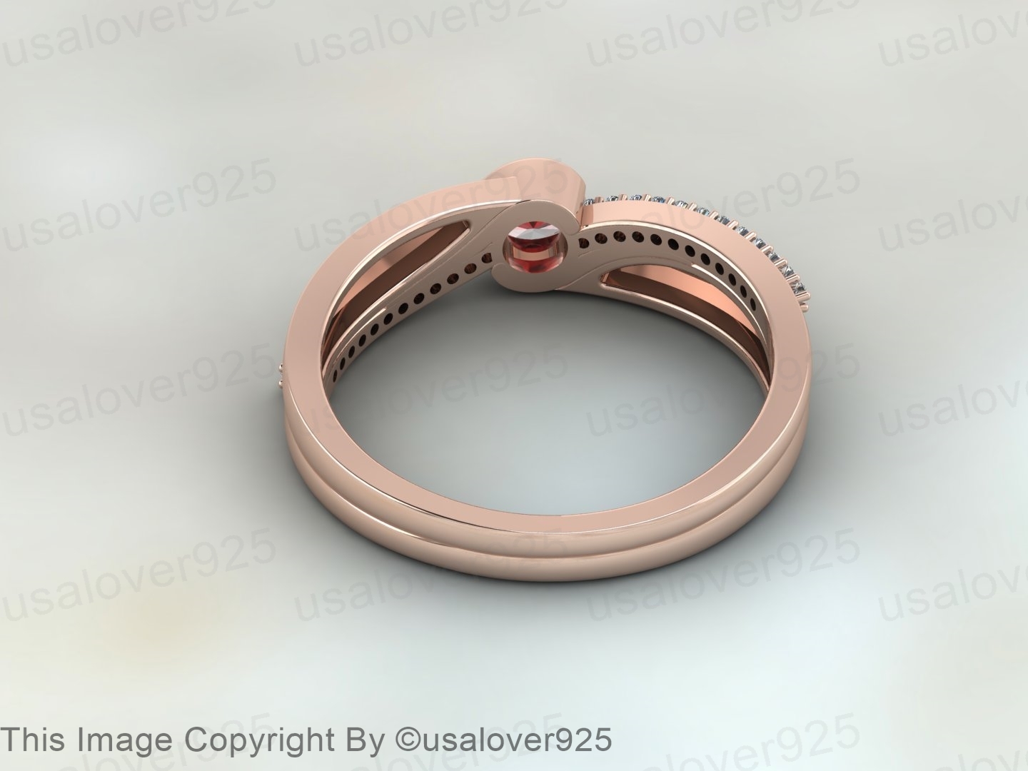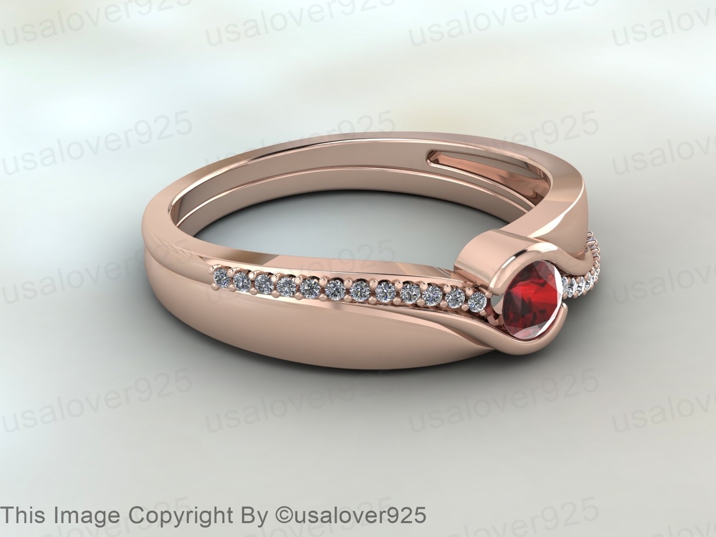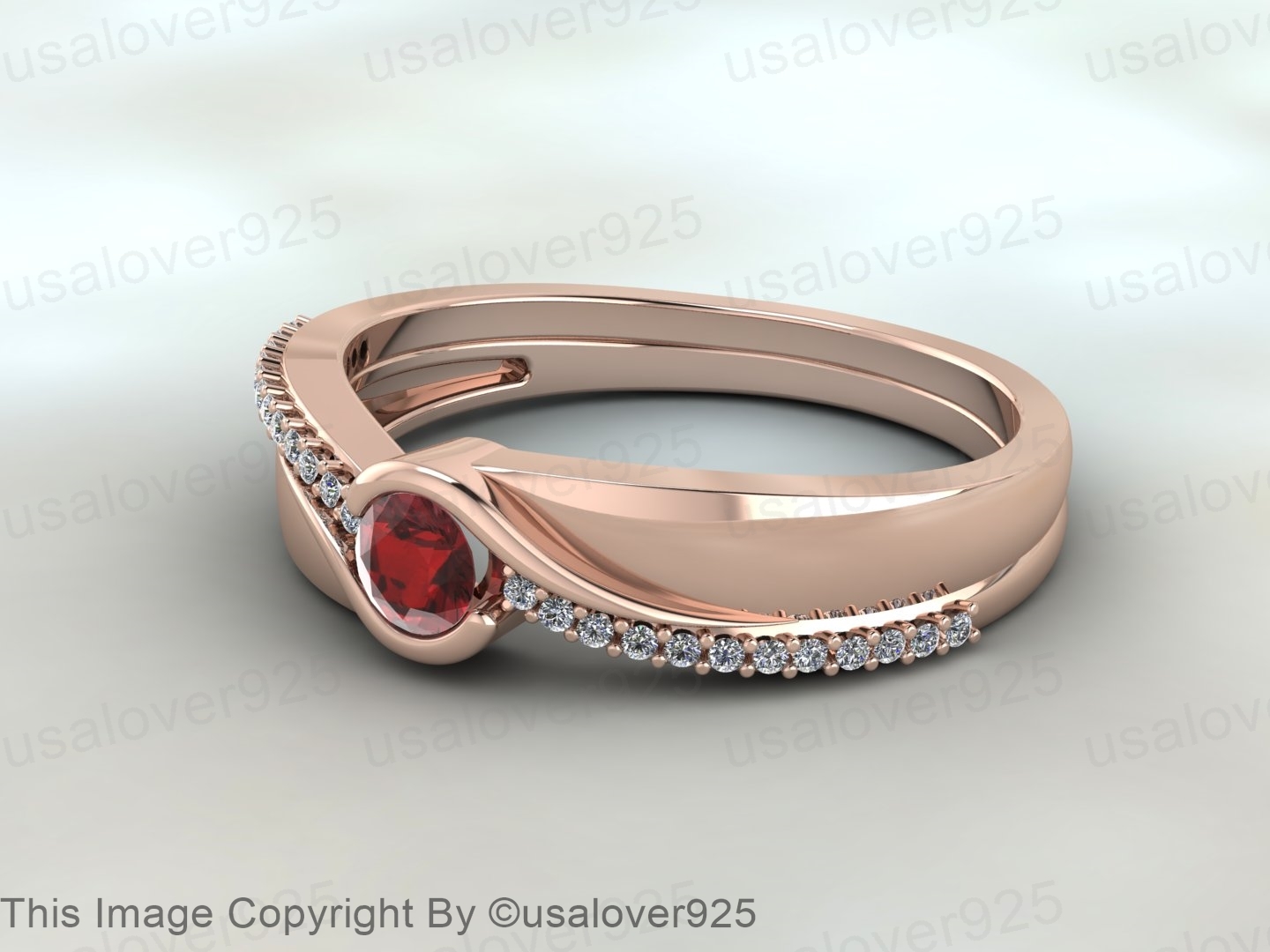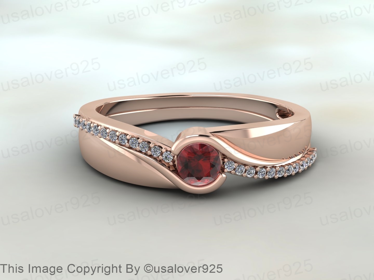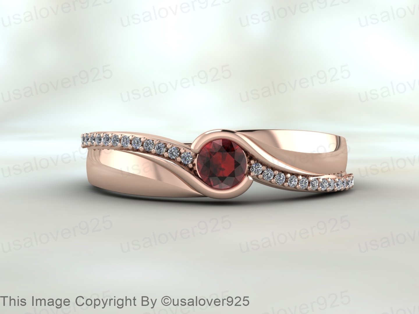 Natural Red Garnet And CZ Diamond Gemstone Sterling Silver Women Ring