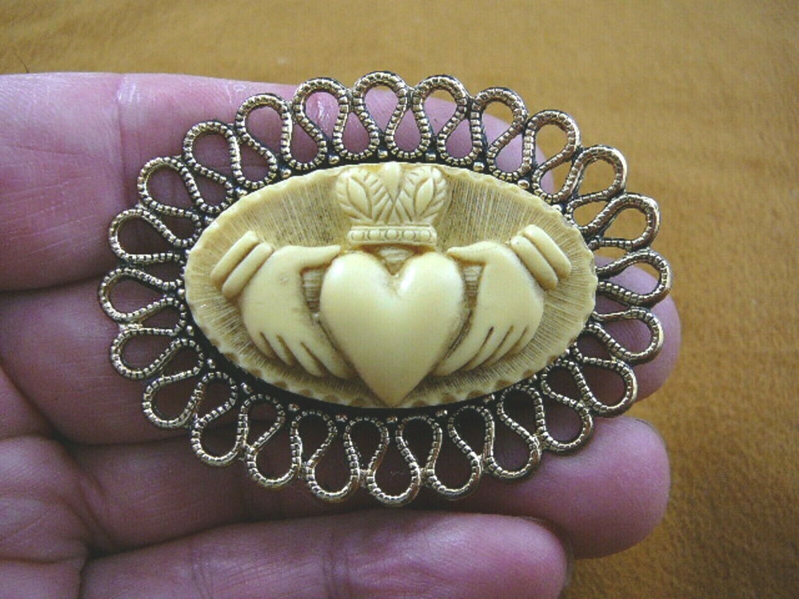 cm38-113) CLADDAGH ivory CAMEO traditional Irish heart brass Pin Pendant Jewelry