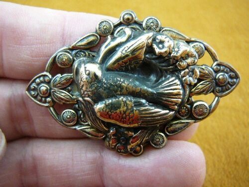 (Internal #B-BIRD-1101) This is a beautiful flying DOVE/LOVEBIRD/SONGBIRD pin/pendant made of Victorian repro brass on a second piece of brass with flower design, MEASURES 1-1/2" tall x 2-1/4" wide. This gorgeous reproduction Victorian stamped brass is antiqued, then buffed to create some shine. Pin/pendant backing is glued on horizontally.