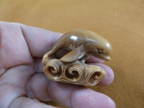 (#TB-WHAL-35) Beautifully hand crafted tagua nut carving of a little Beluga whale jumping over waves, single tagua nut, average 2? long x 1-3/8? wide x 1-3/8? tall. Carved in Bali.