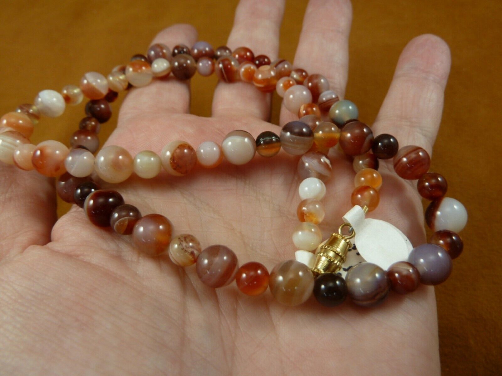 AGATE Gemstone Beaded NECKLACES (Brazil) - Beautiful orange, brown, pink, and white striping