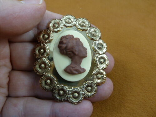 CA2-7 Rare African American LADY ivory + milk chocolate resin CAMEO Pin Pendant