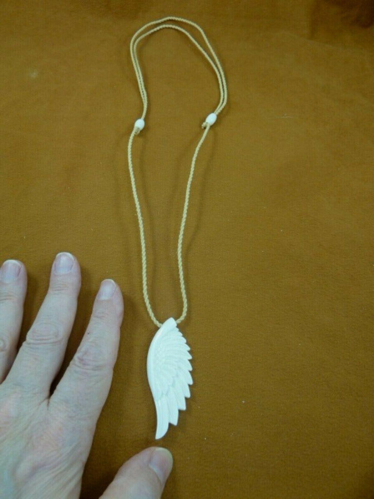 (Internal #J-FEATH-1) You are bidding on a beautifully hand carved white FEATHERS/WING PENDANT NECKLACE.