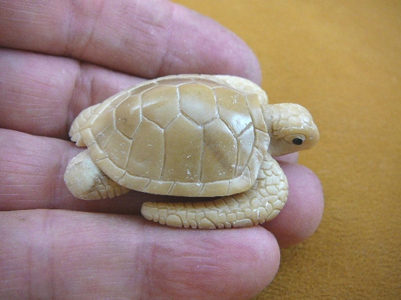 (#TB-TURT-56) Beautifully hand crafted tagua nut carving of a detailed, medium Sea Turtle with bottom carved; average 2? long x 1-5/8? wide x 1/2? tall. Carved in Bali.