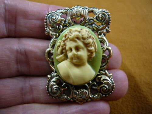 (cs10-9) CHERUB angel green + ivory CAMEO Pin Jewelry brooch PENDANT necklace