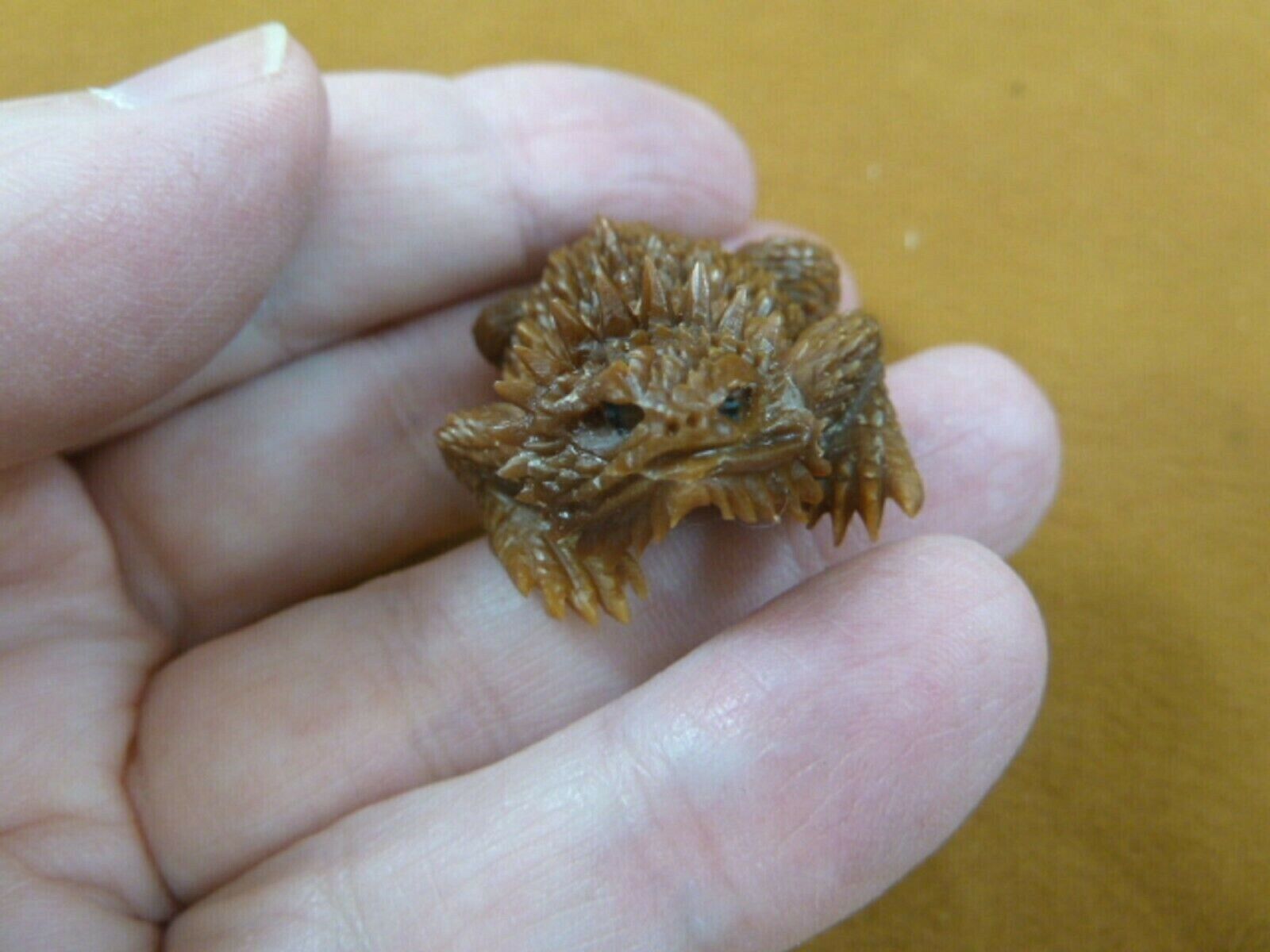 tb-liz-57 Horned Lizard Tagua NUT palm figurine Bali detailed carving horny toad