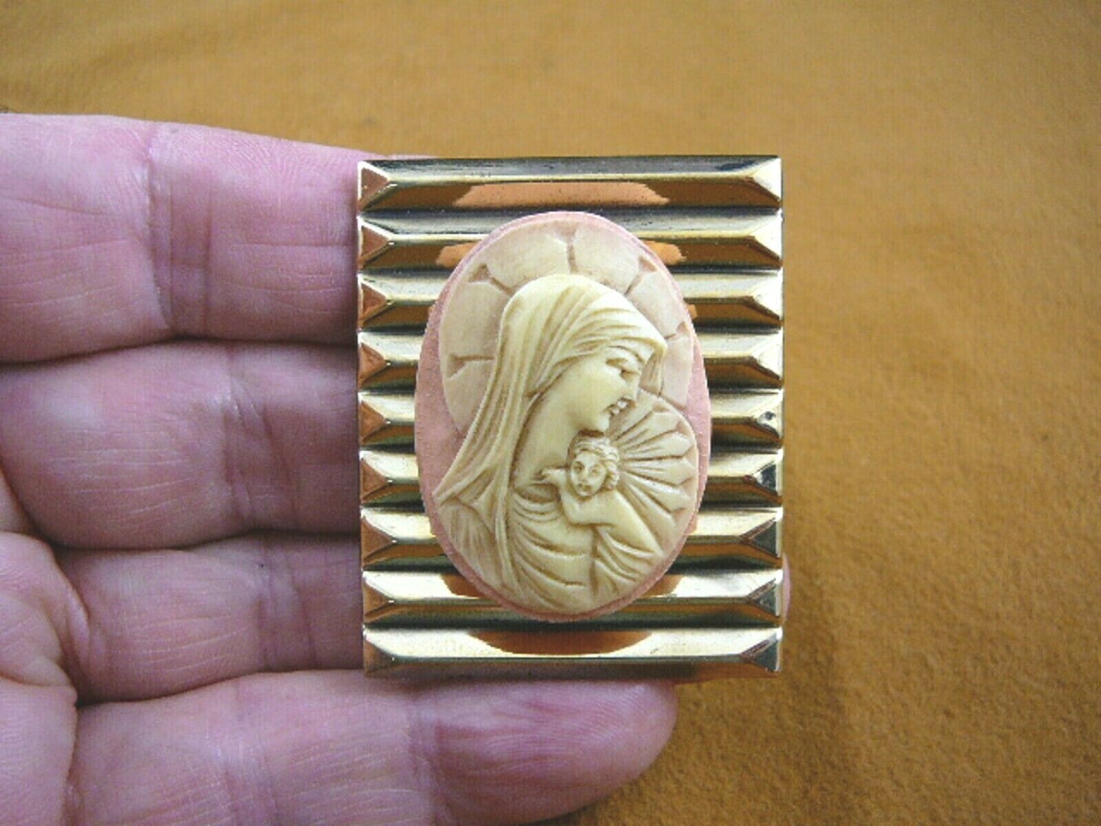 (CM4-21) MADONNA Mary Jesus pink + ivory CAMEO Pin Pendant Jewelry Christian