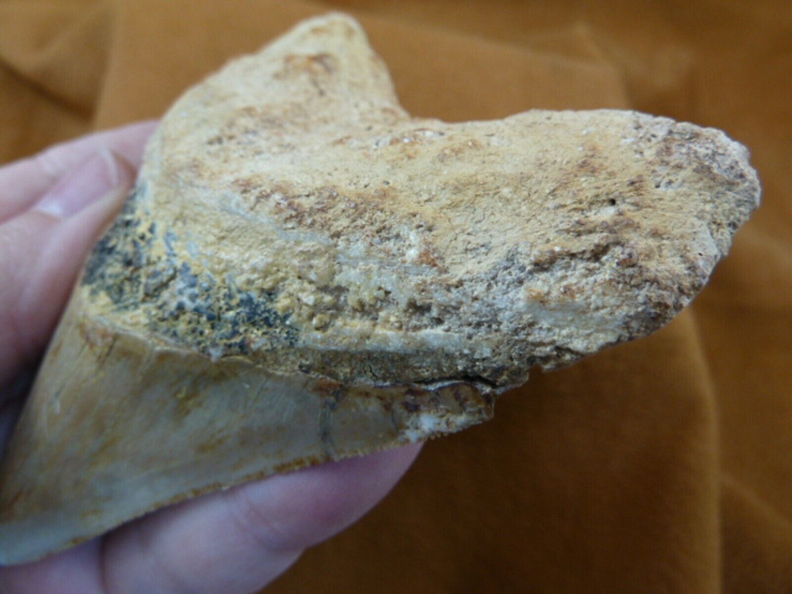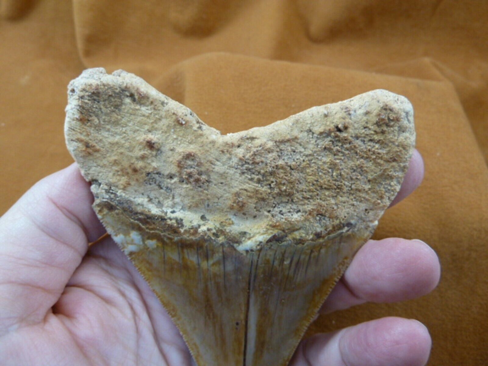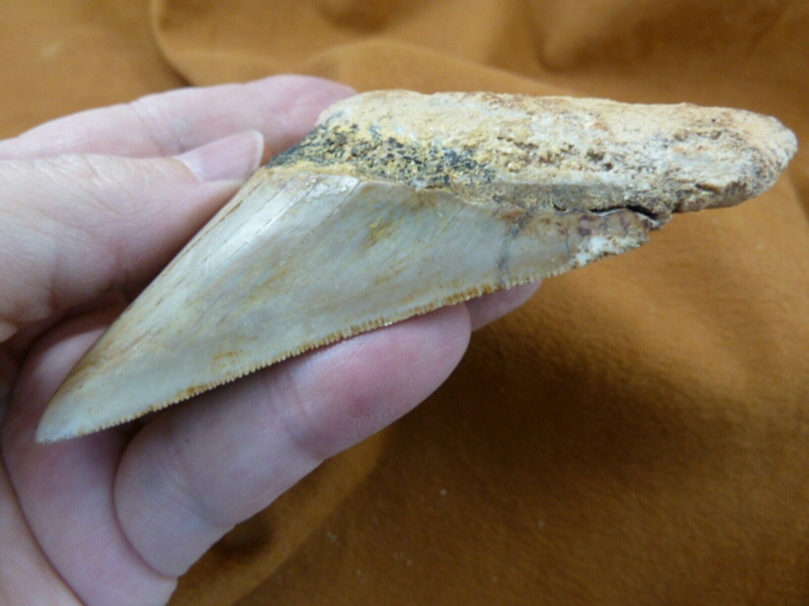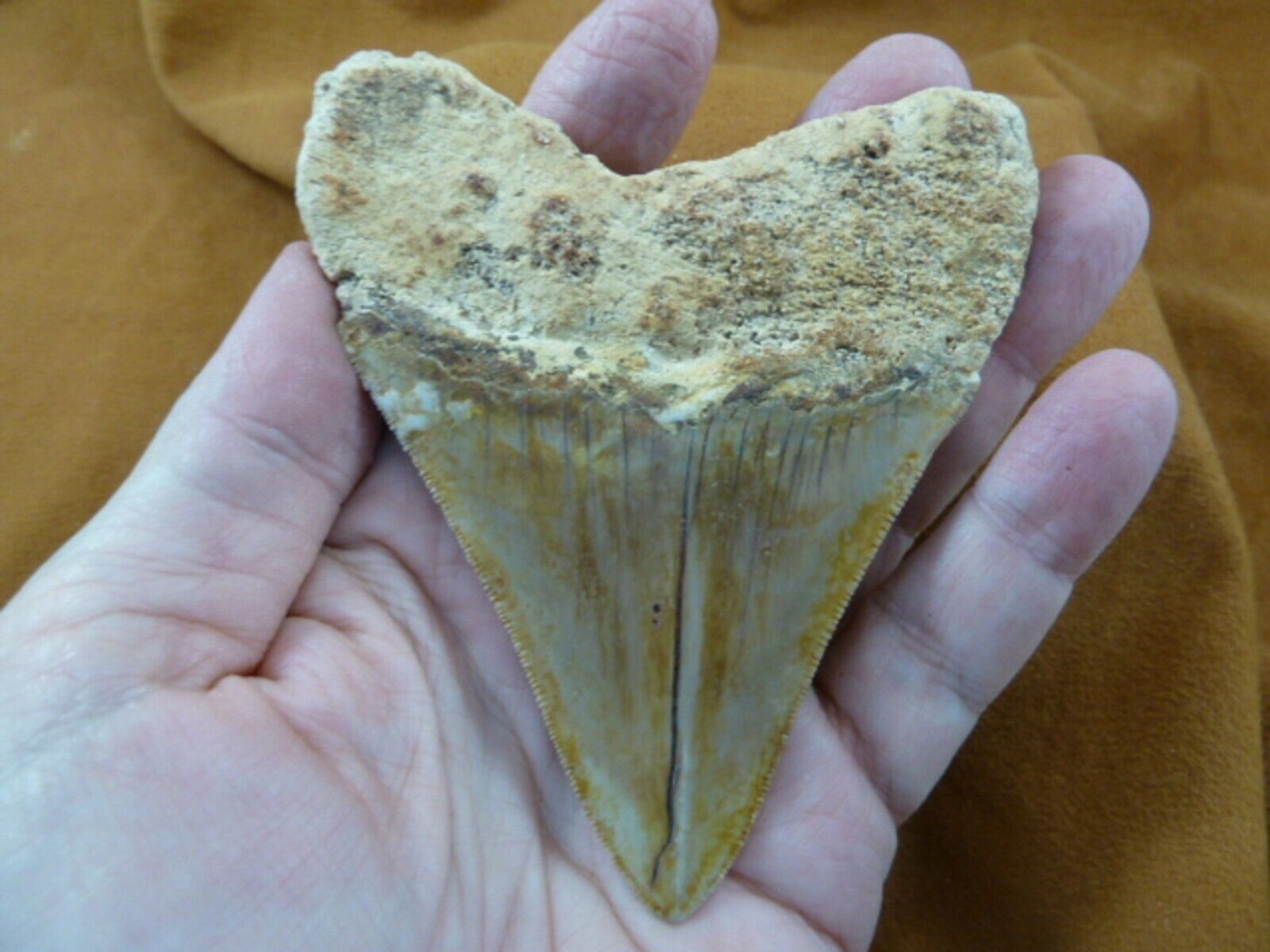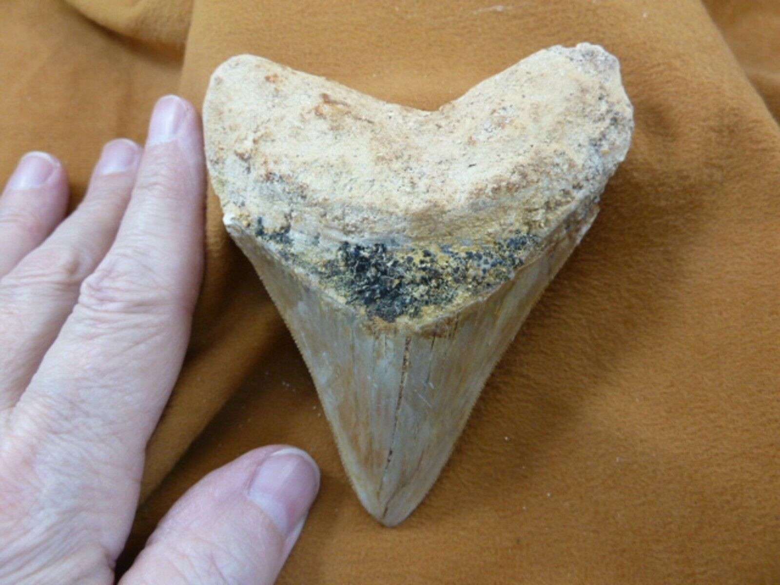 (internal #S296-4) You are bidding on a GENUINE MEGALODON FOSSIL SHARK TOOTH, measuring 4-1/16? long x 3-3/8? wide across root (measured from the bottom tip, along the longest side, to the top of the root "ear").