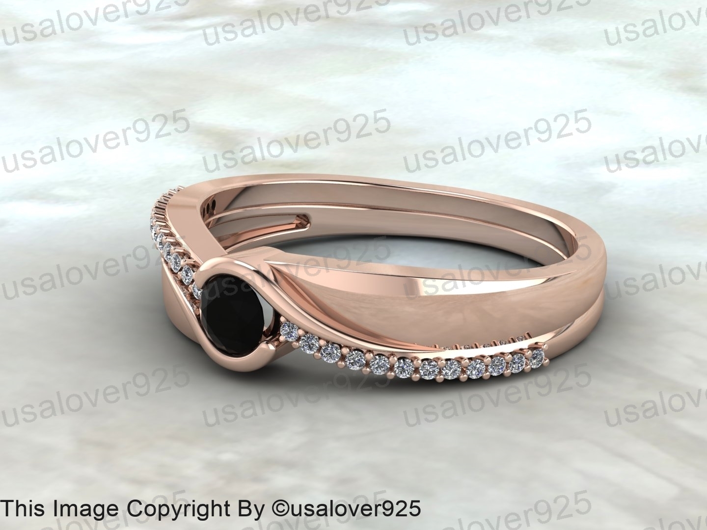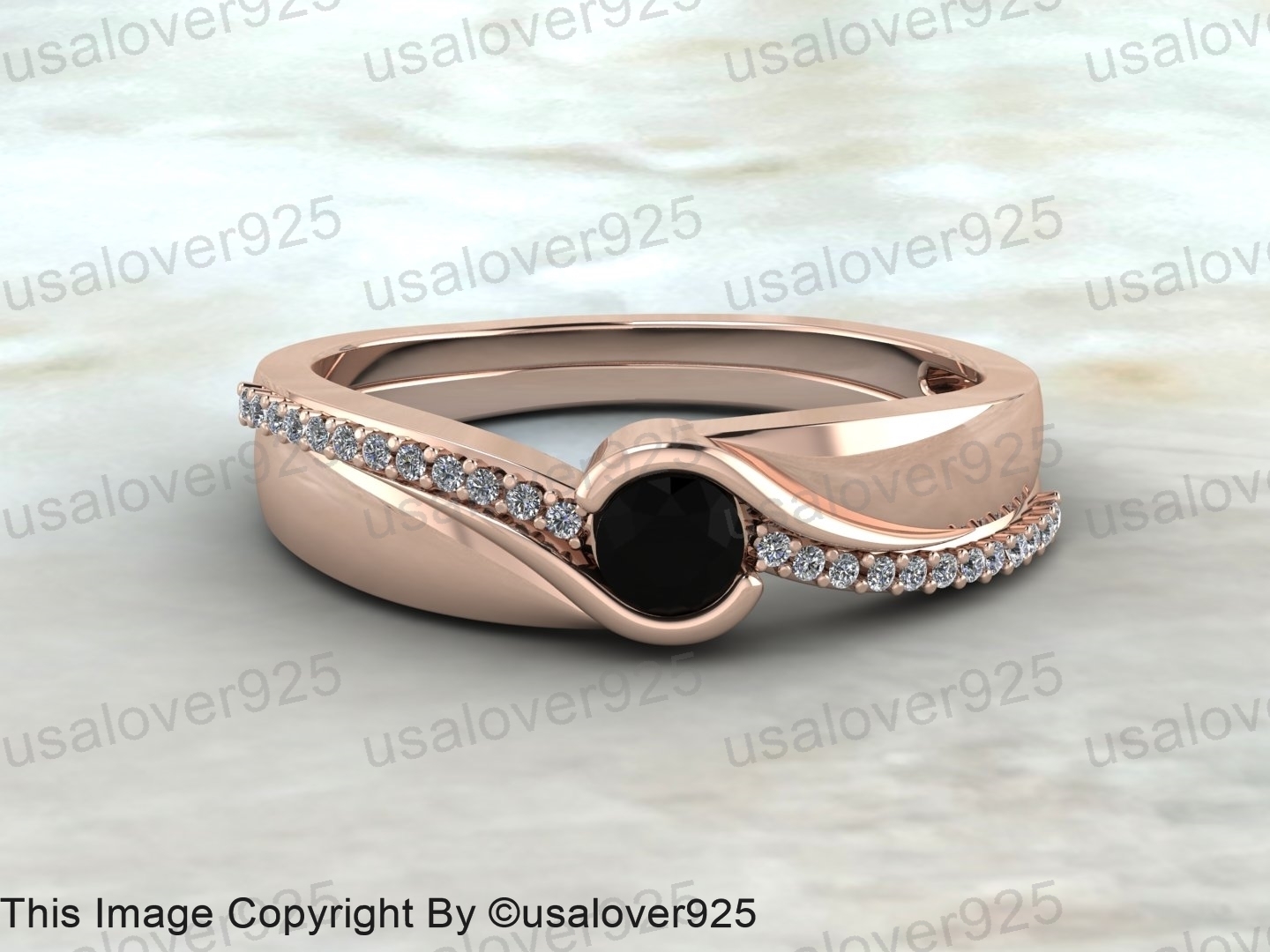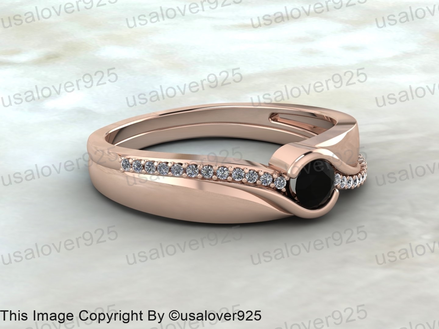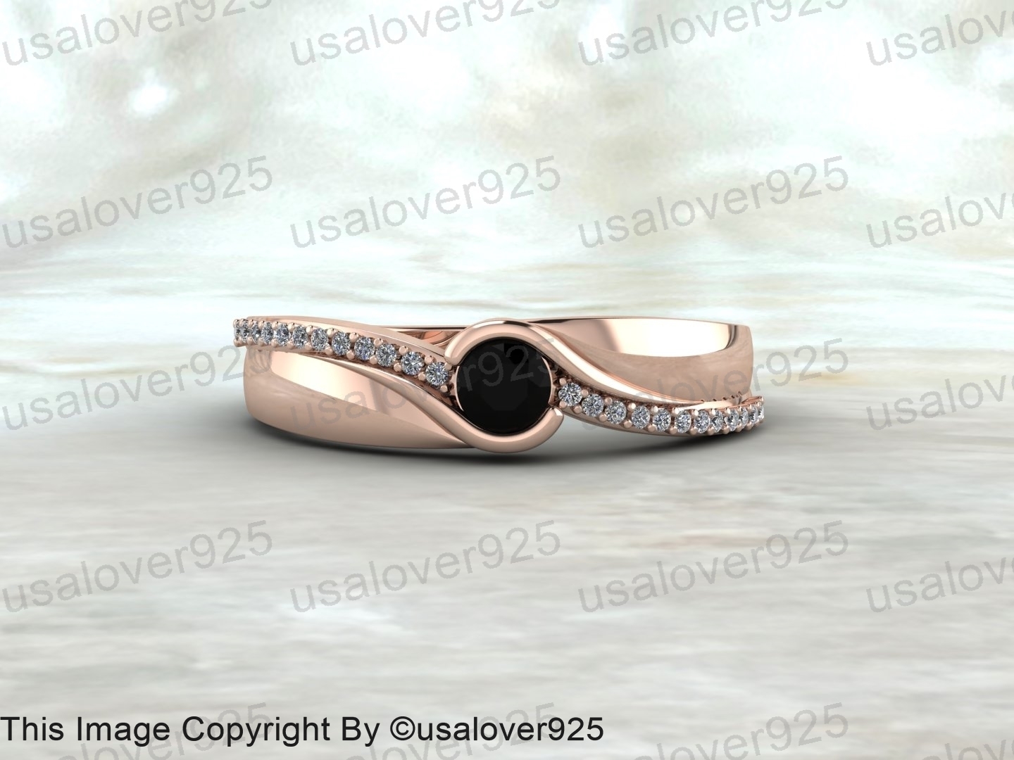 Natural Black Onyx And CZ Diamond Gemstone Sterling Silver Women Ring