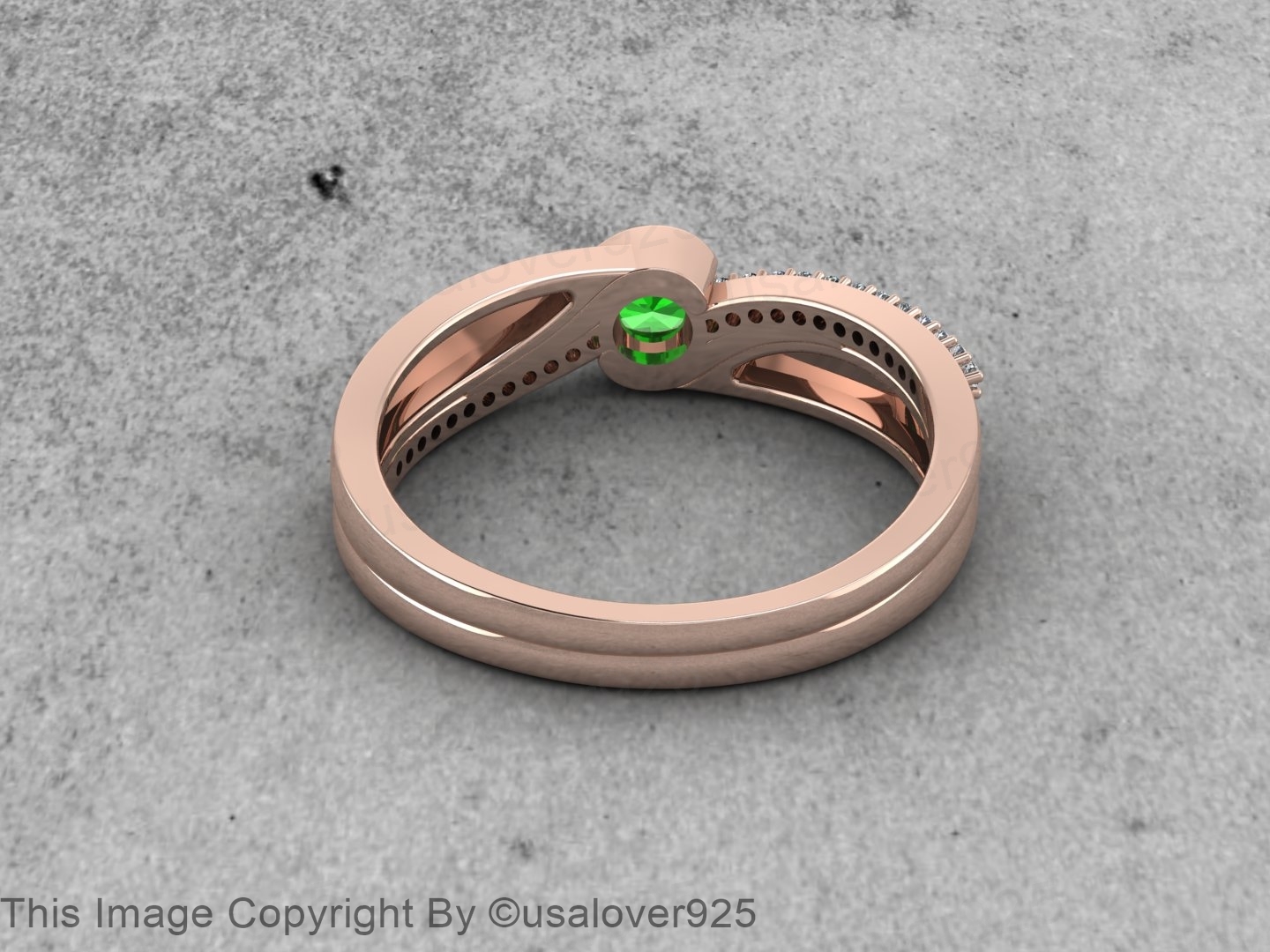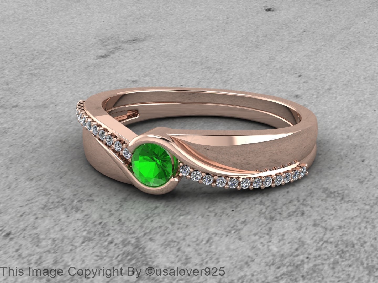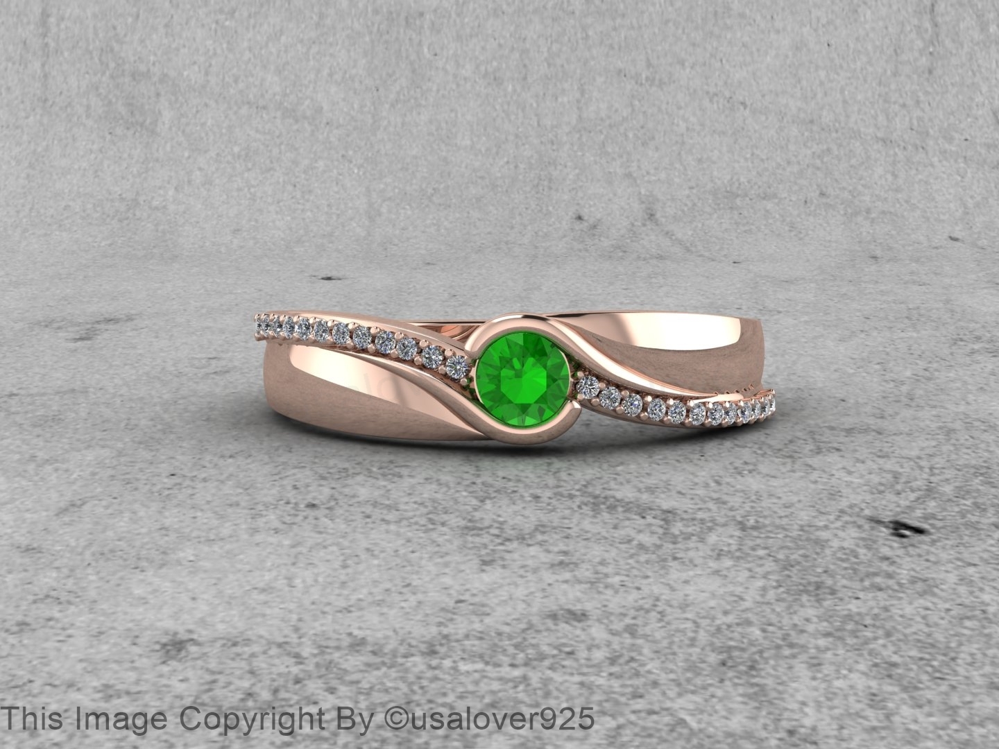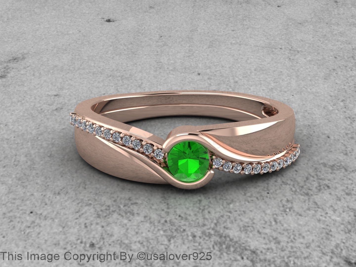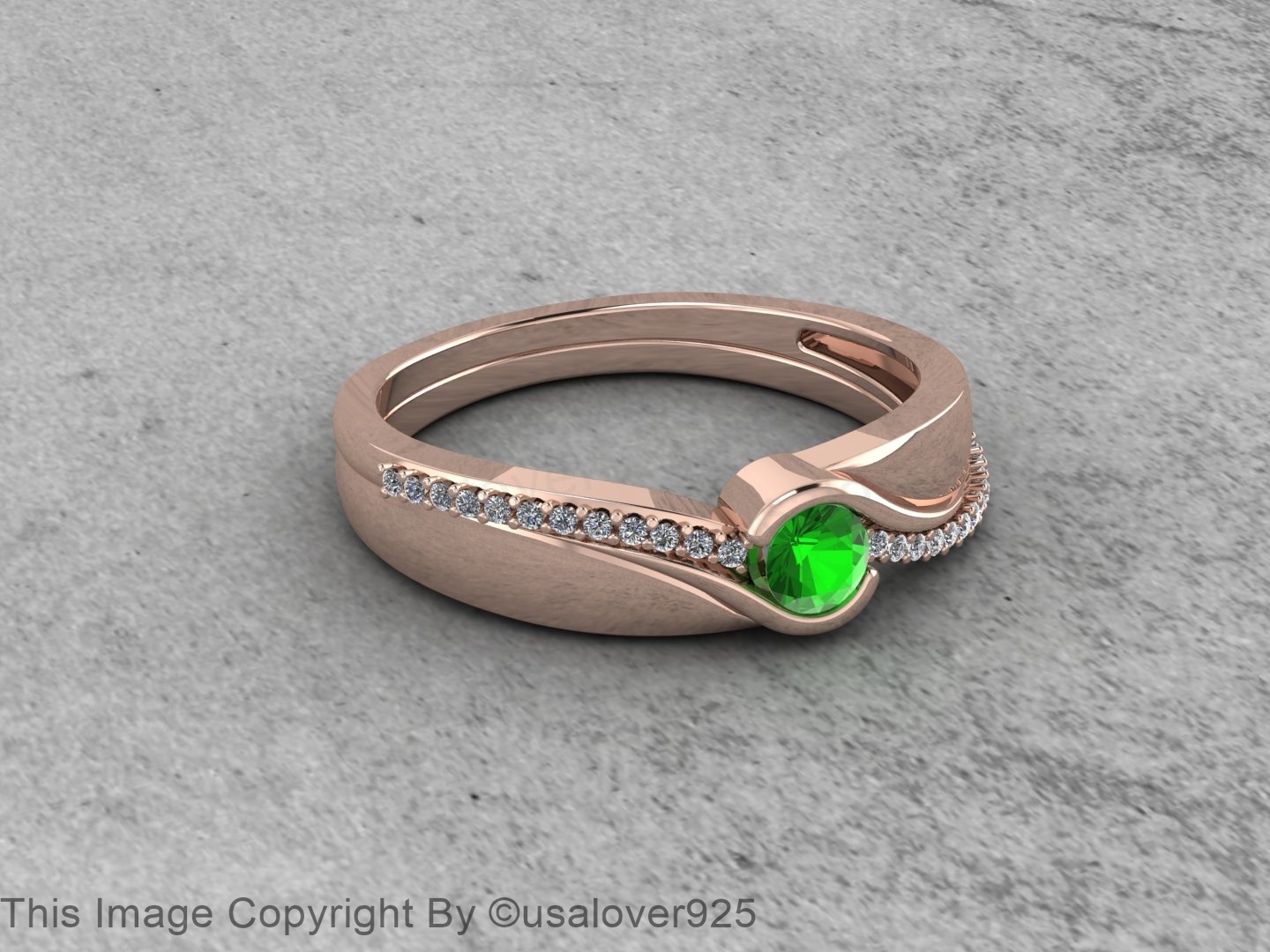 Natural Green Tsavorite And CZ Diamond Gemstone Sterling Silver Women Ring