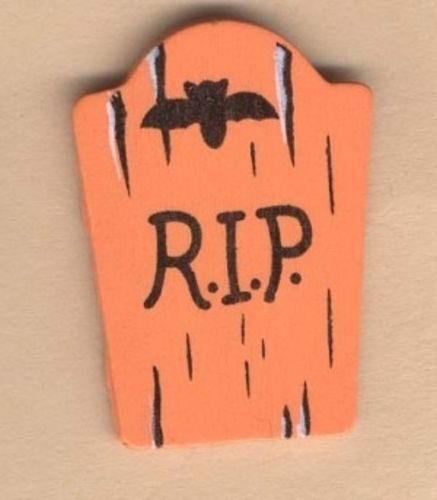 Funny Gothic TOMBSTONE R.I.P. RIP PIN BROOCH - Wood Halloween Cemetery