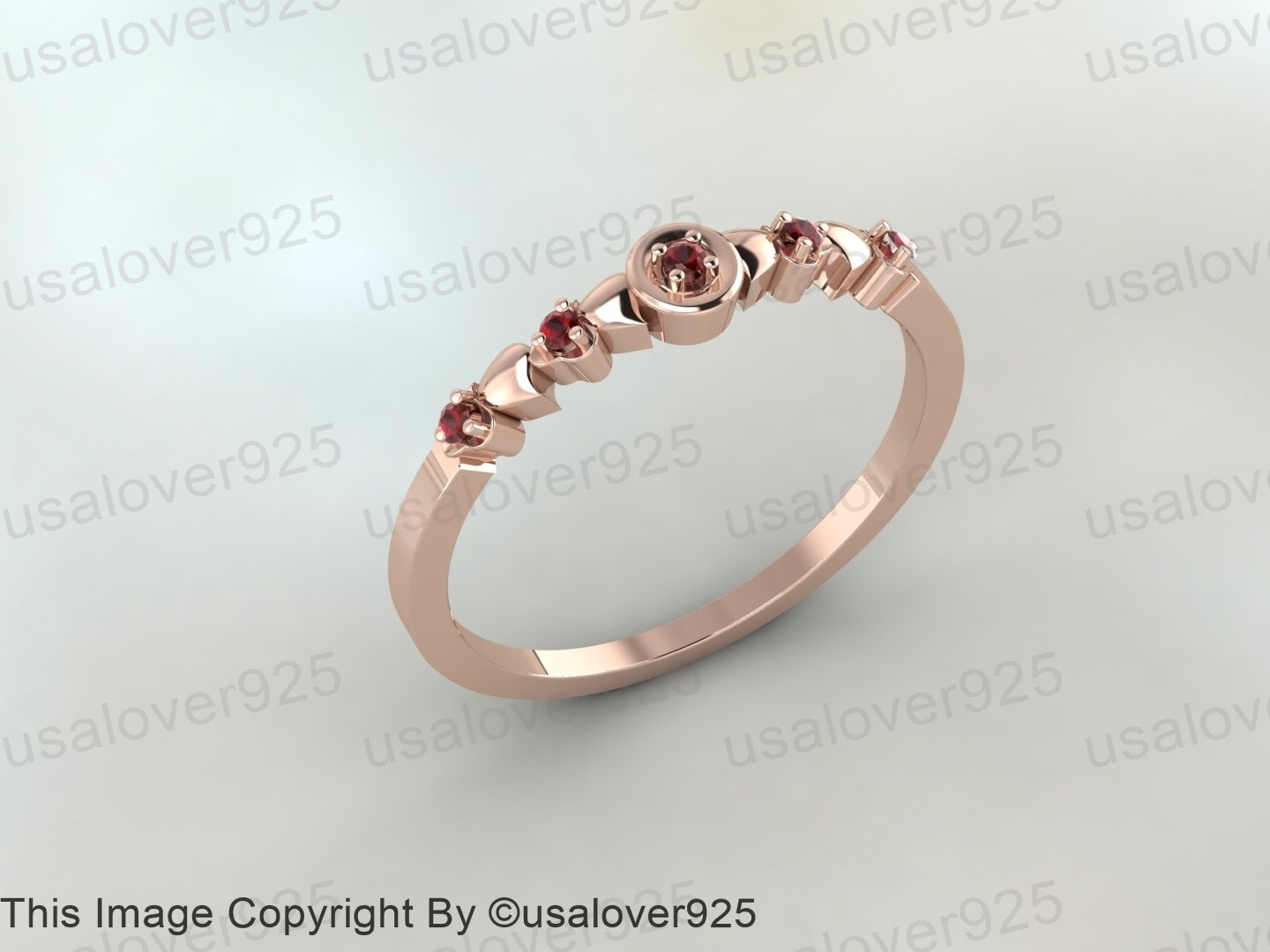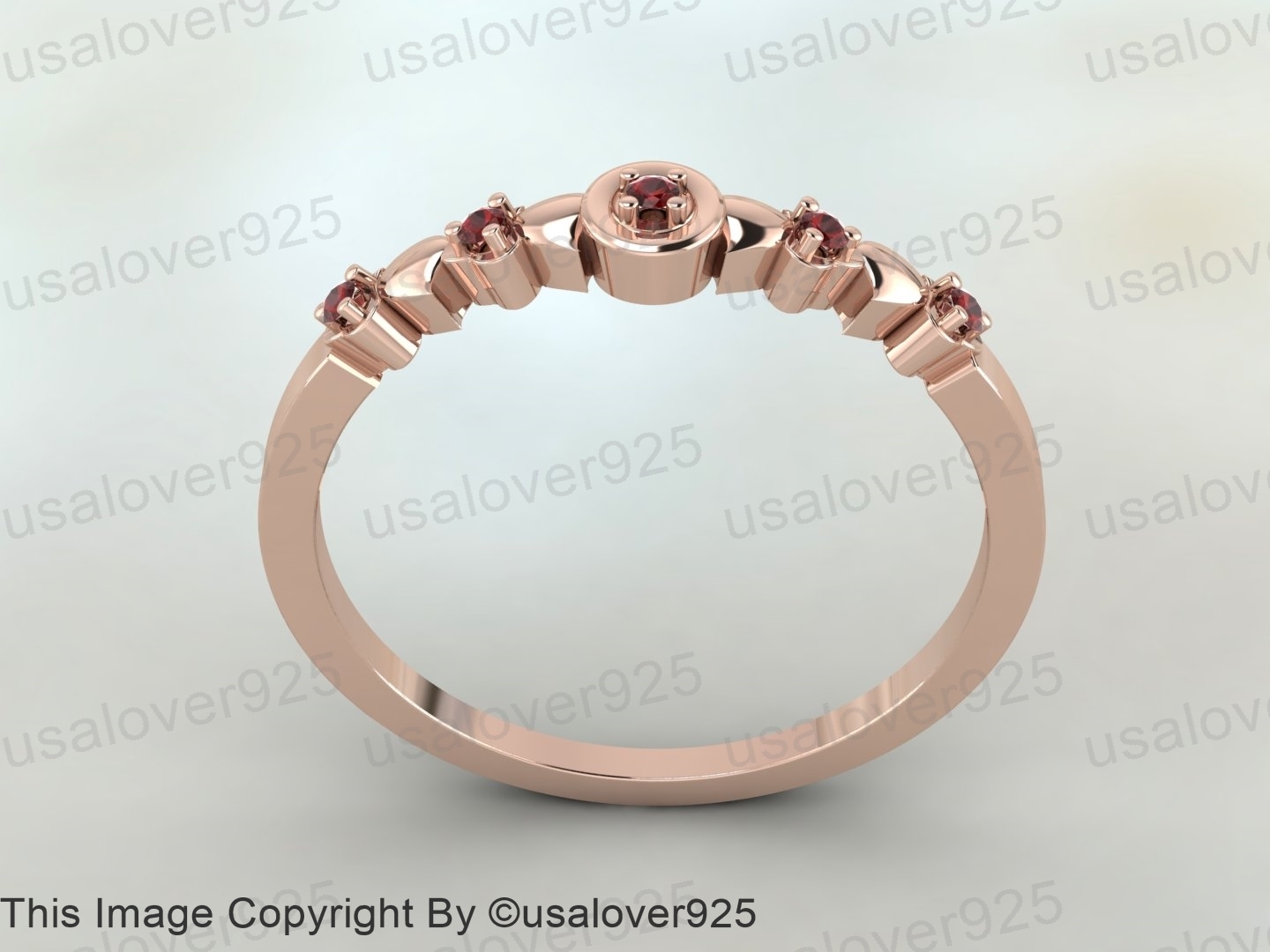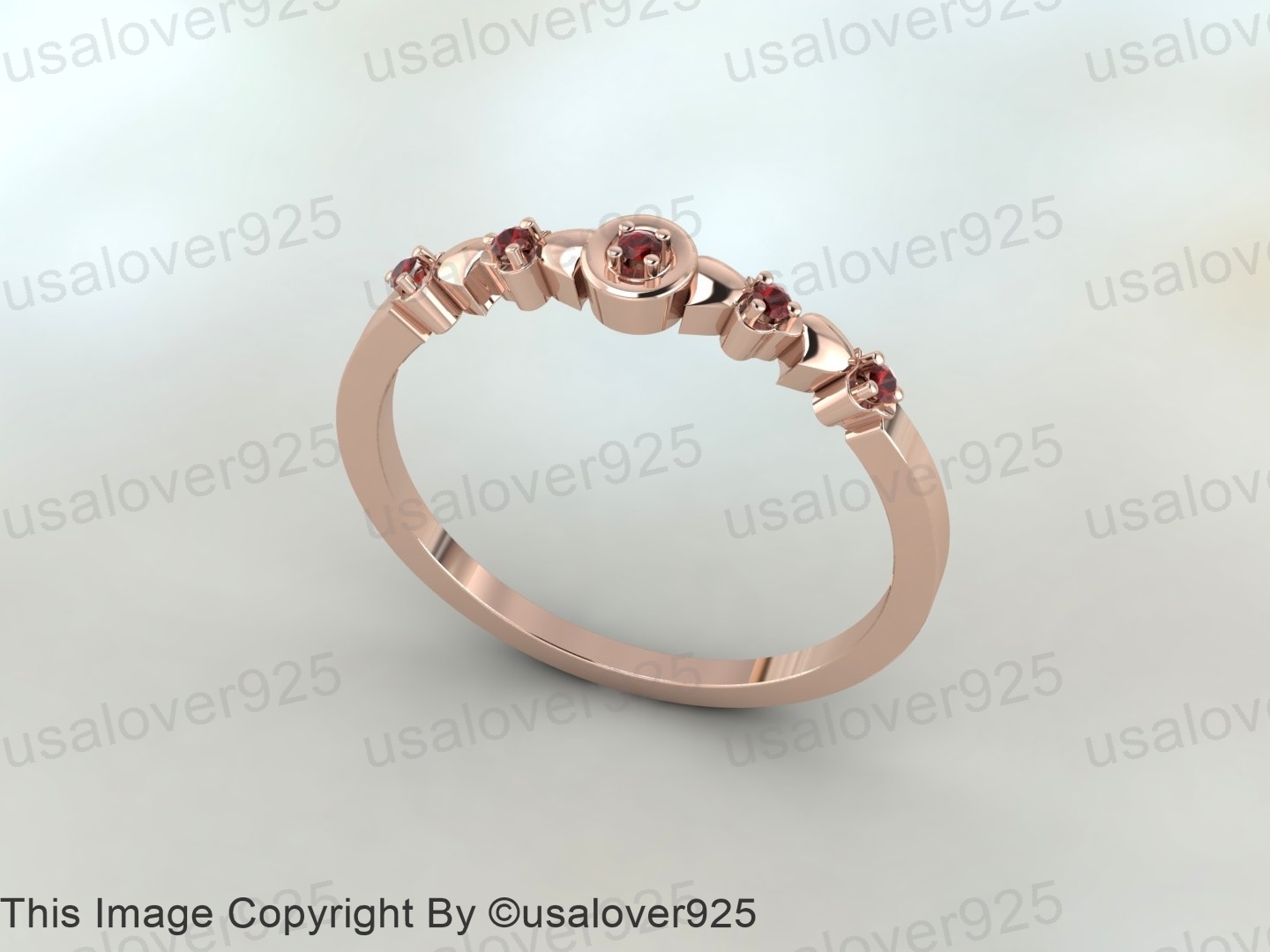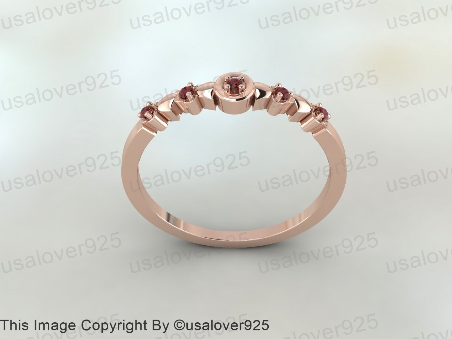 Natural Red Garnet Round Gemstone Sterling Silver Women Ring