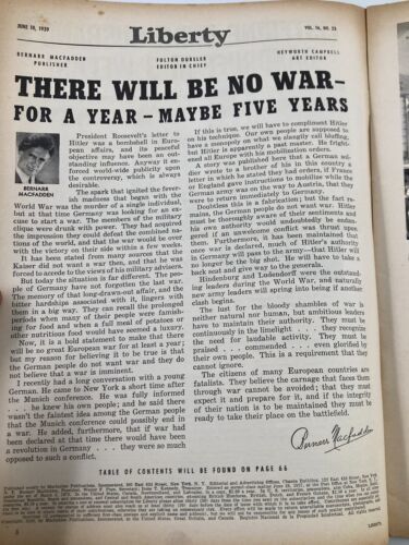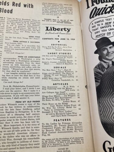 VTG Liberty Magazine June 10 1939 The Democracy by H. G. Wells No Label
