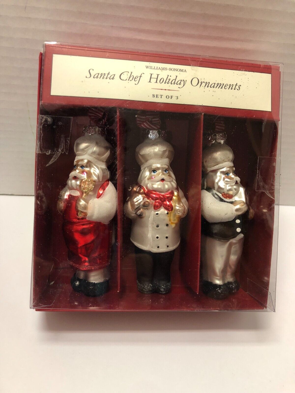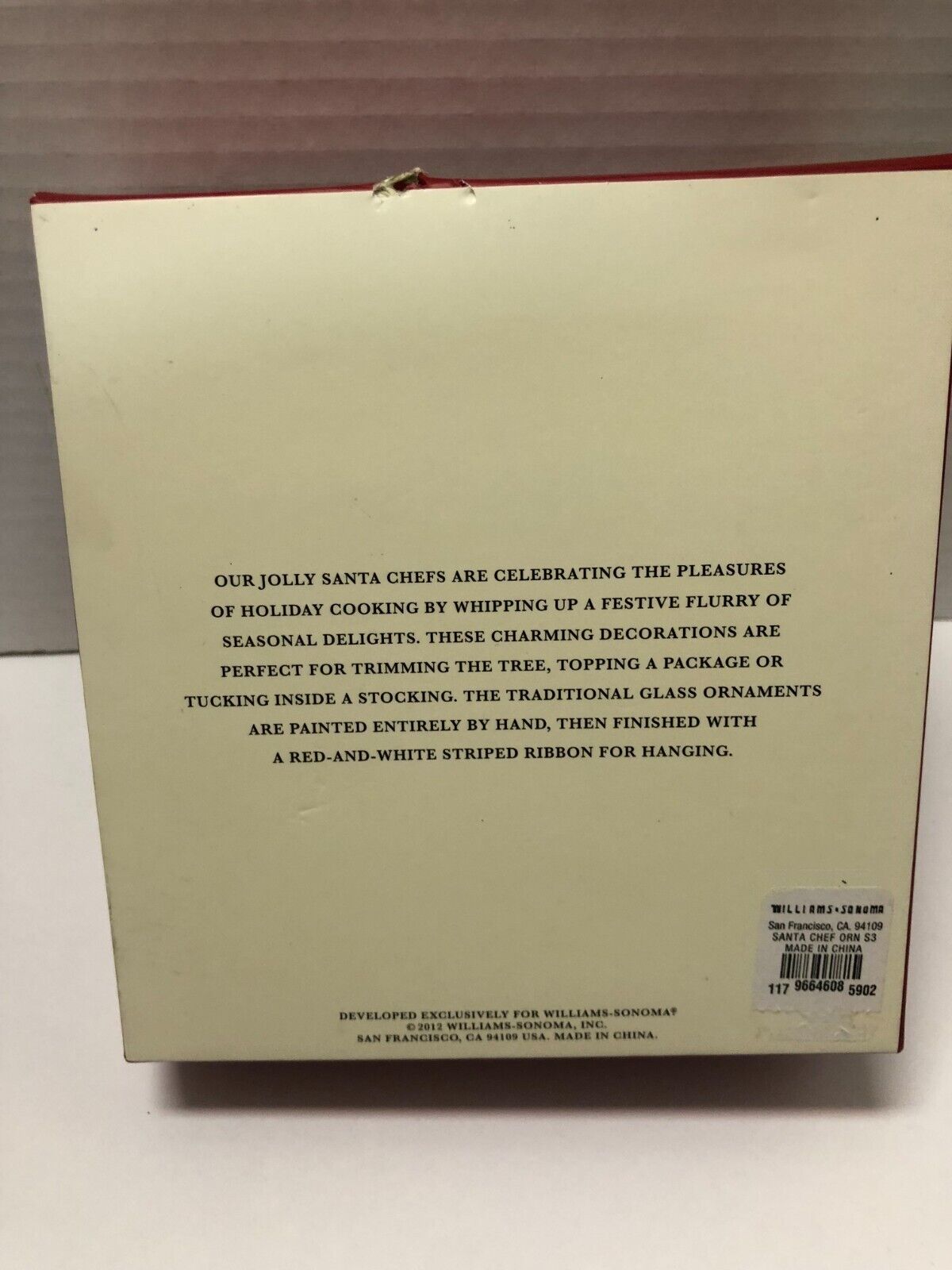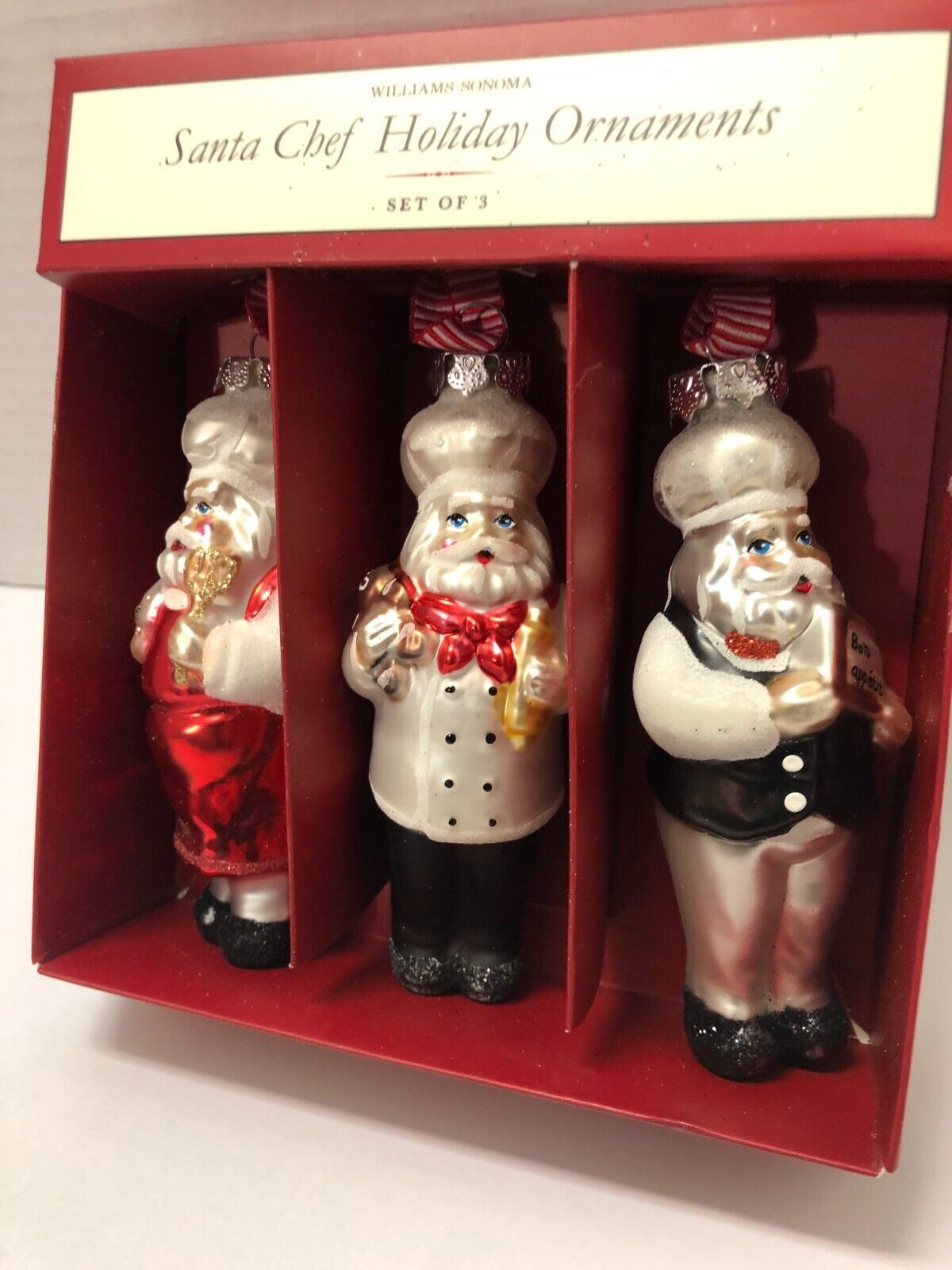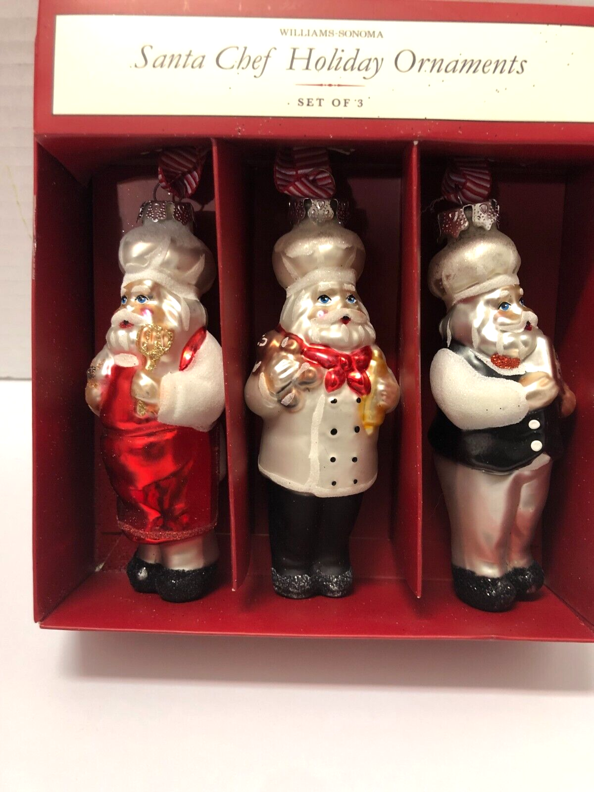 Williams-Sonoma Santa Chef Glass Xmas Christmas Ornaments Handpainted Set of 3