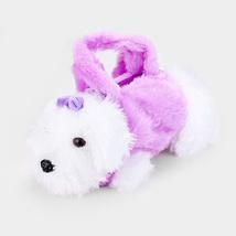 Novelty purple furry fluffy plush Puppy Dog Doll Handbag Crossbody Bag. Inner lining . Great gift for the boy or girl in your life who loves Puppies and doggies , or just for the love of collecting . Strap size : 18 inches long adjustable strap. Zipper closure and hair bow. Size : 13" Wide , 7" High