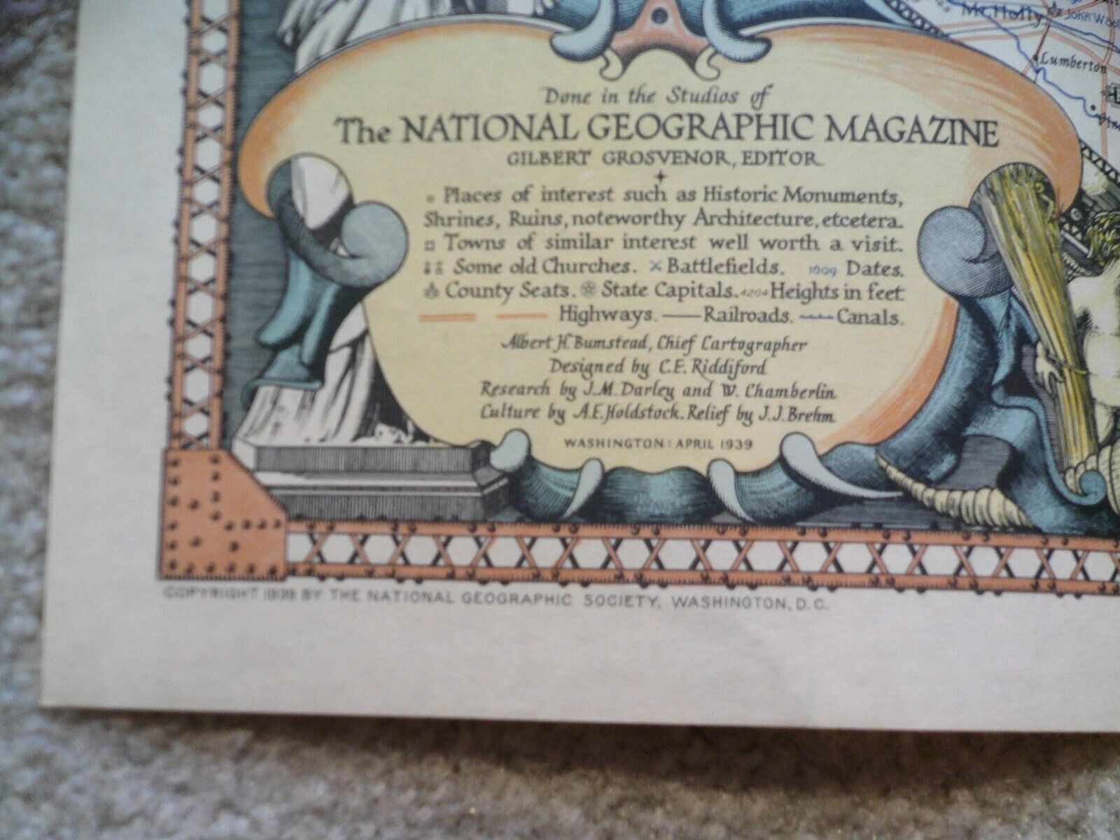 are bidding on a nice, large old, original 1939 dated, folded map from the National Geographic Society, a historical map of the great reaches of New York City. About 29 inches tall, 26 1/4 inches wide. Light wear for a folded map with light wrinkles, great piece to frame. Zoom in for details.