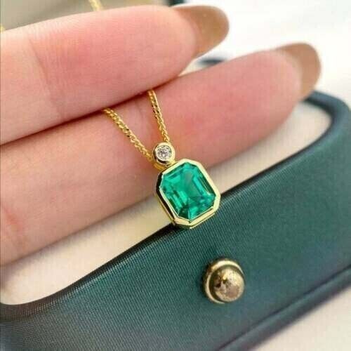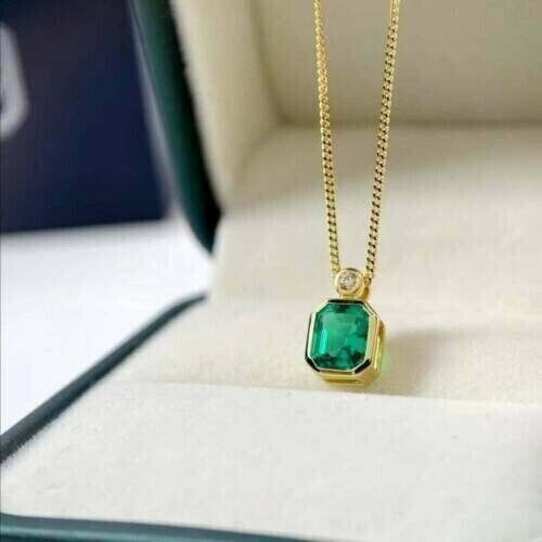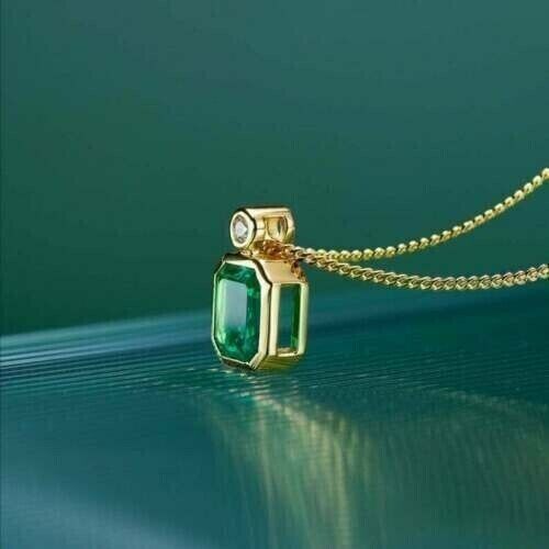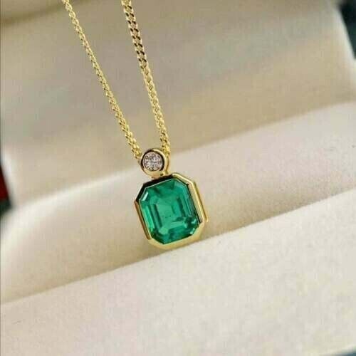 3Ct Asscher Cut CZ Green Emerald Pendant 14k and similar items