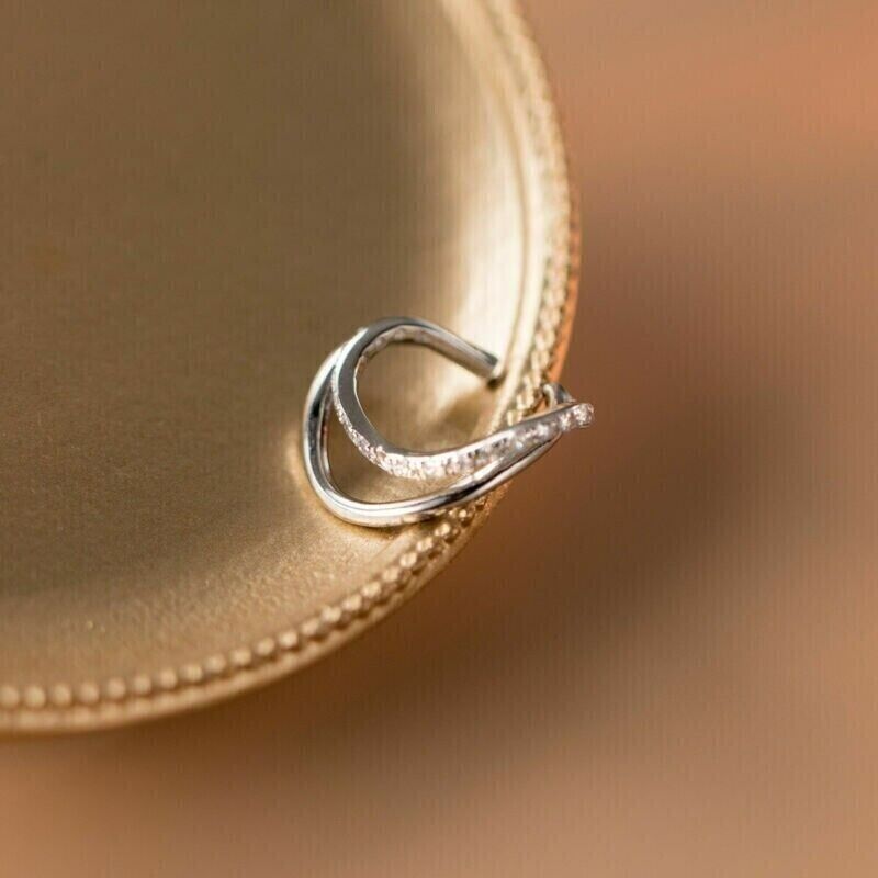 0.20Ct Round Cut cubic zirconia Swirl Ear Cuff Earrings 14k White Gold Plated