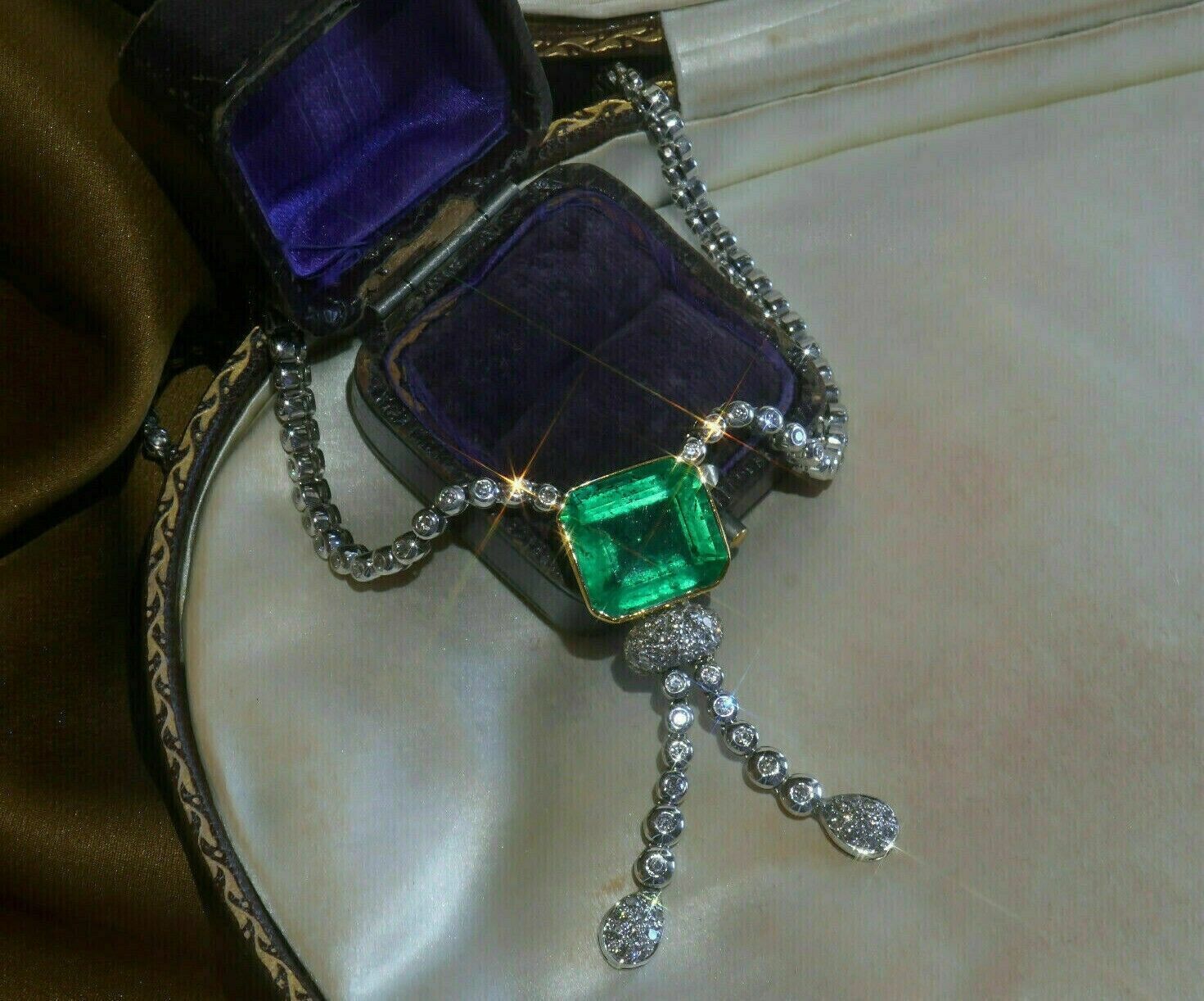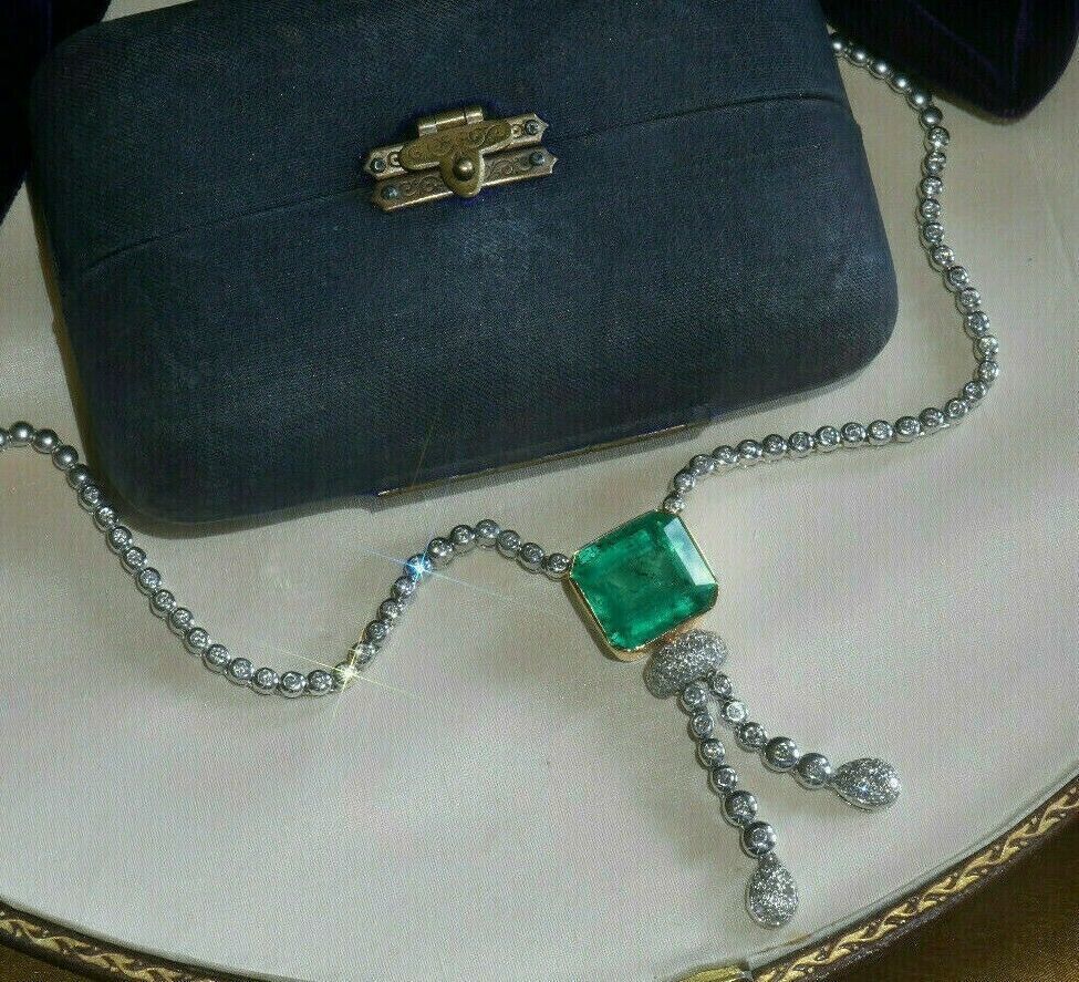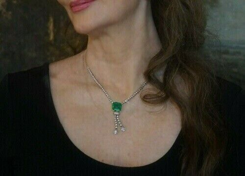 13.61 Ct Cushion Cut CZ Emerald Necklace and similar items