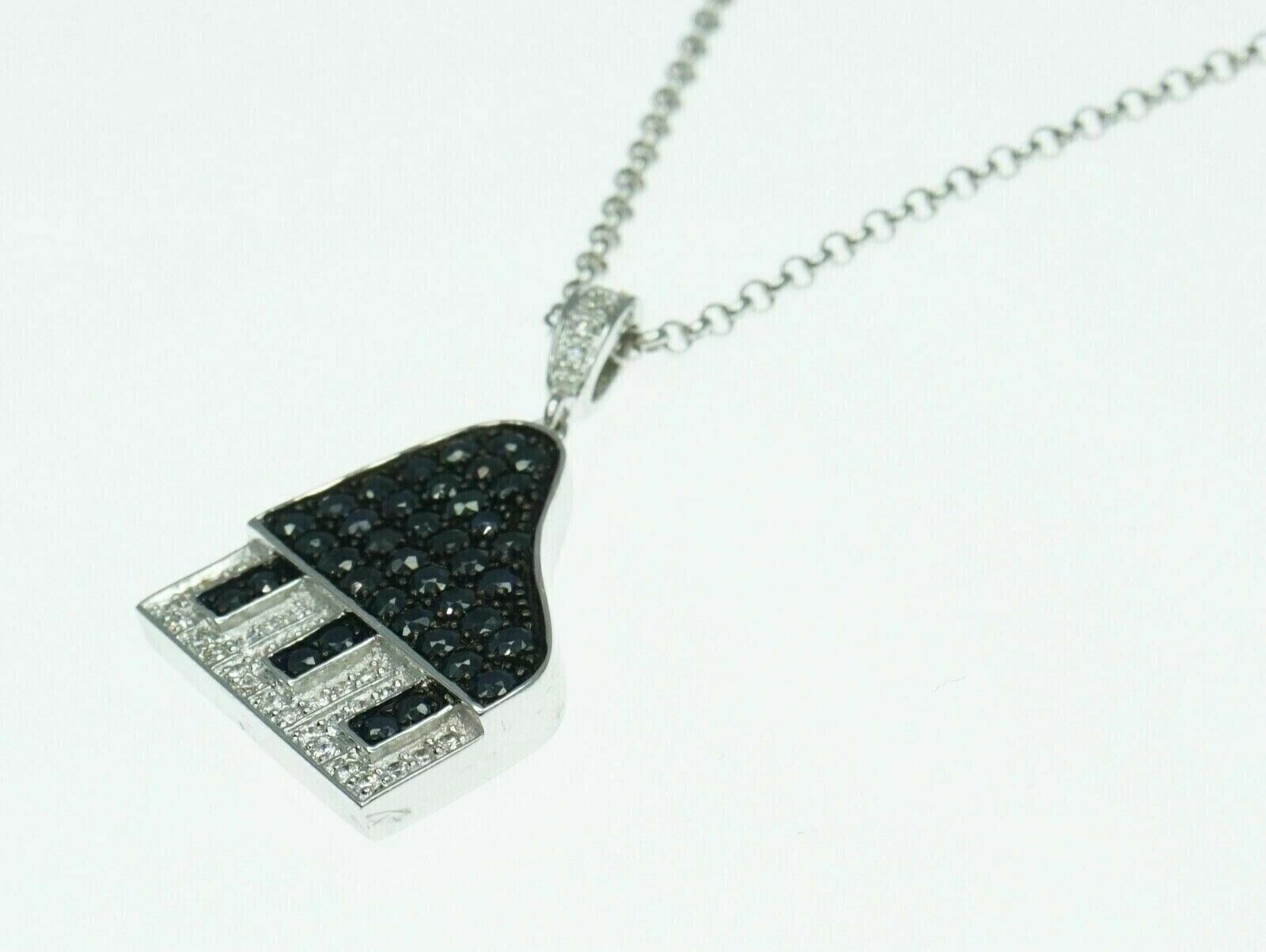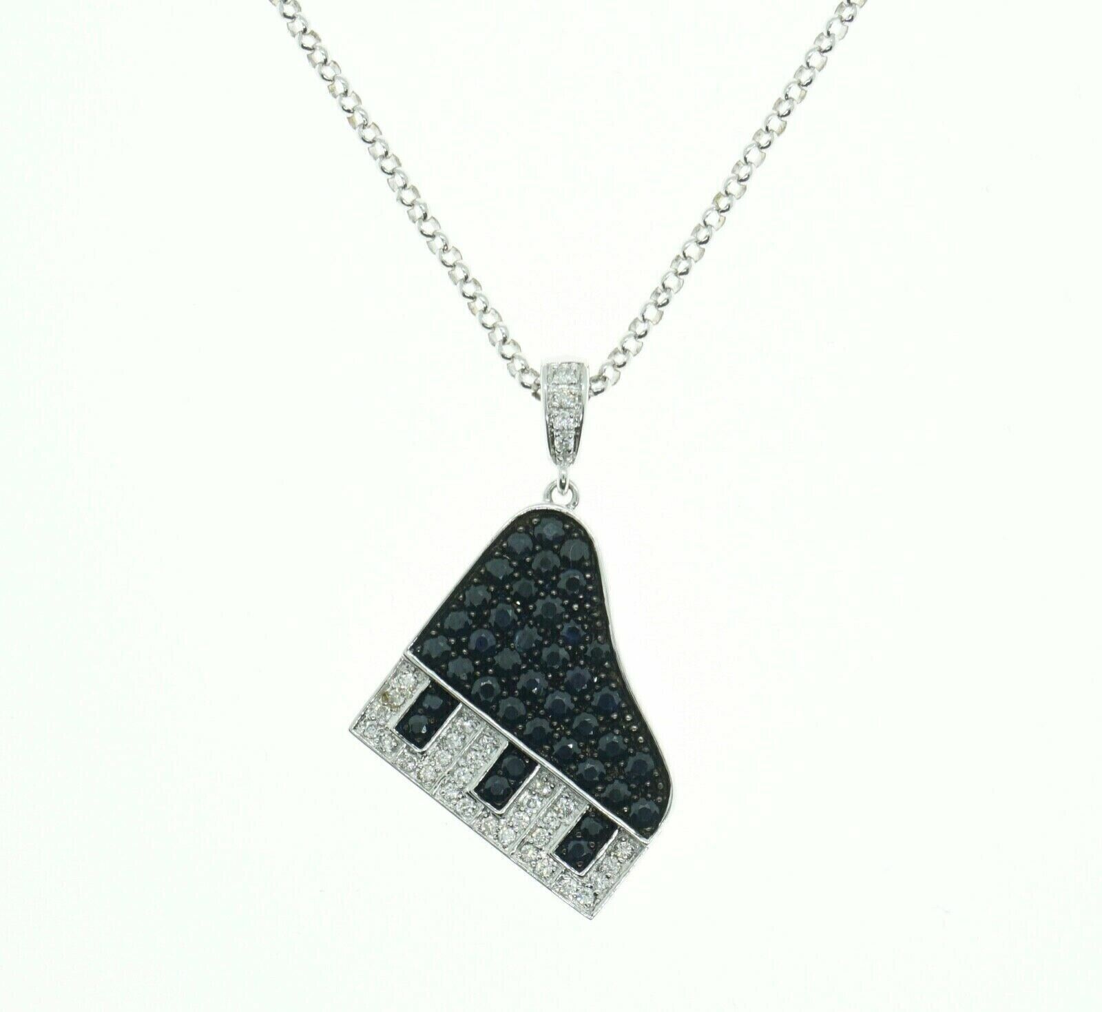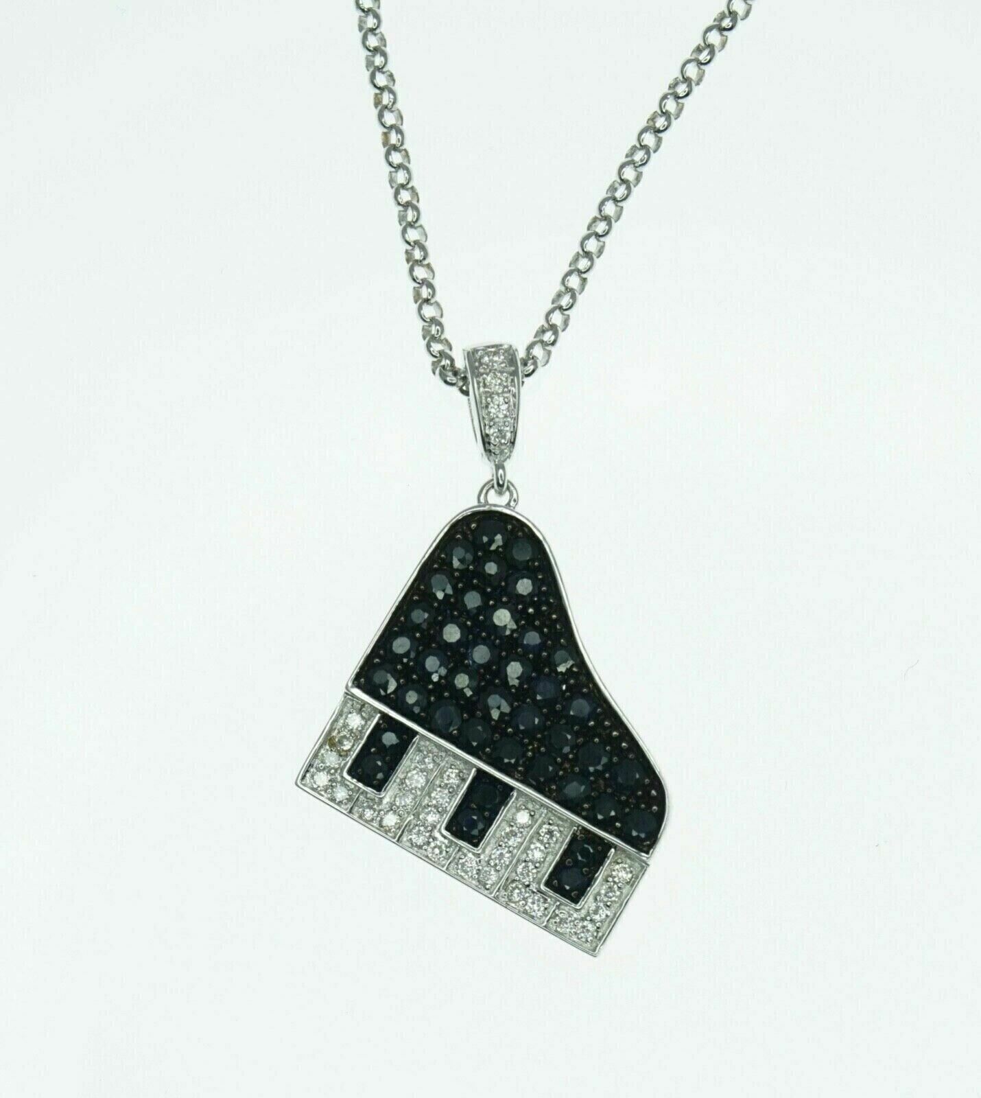 14K White Gold Plated 1Ct Round Cubic Zirconia Piano Pendant With 18" Chain