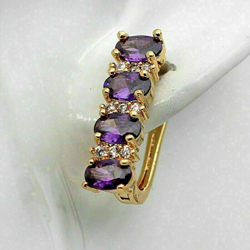 4Ct Oval Cut CZ Amethyst Huggie Hoop Women's 14K Yellow Gold Plated