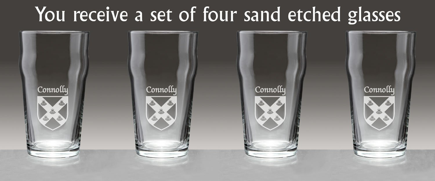 Connolly Irish Coat of Arms Pub Glasses - Set of 4 (Sand Etched)