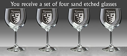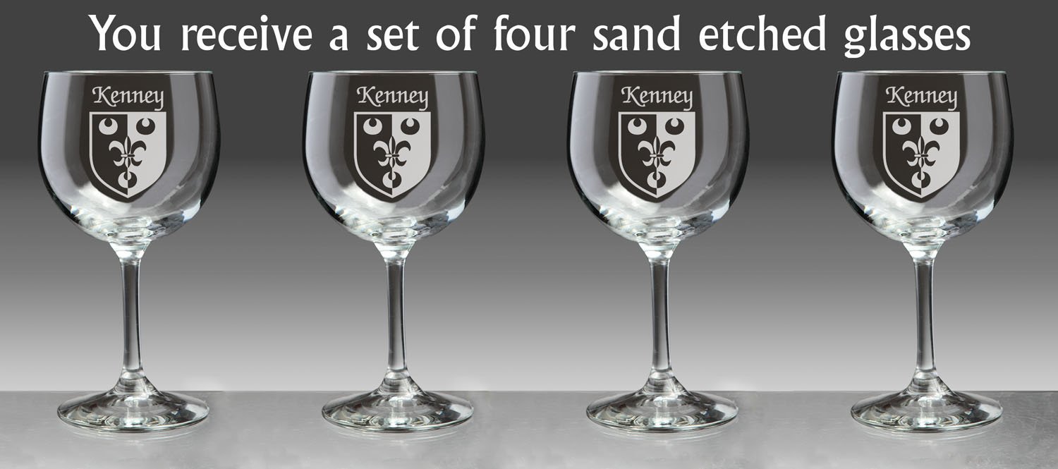 Kenney Irish Coat of Arms Red Wine Glasses - Set of 4 (Sand Etched) |