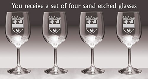 McArdle Irish Coat of Arms Wine Glasses - Set of 4 (Sand Etched) |
