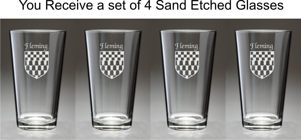 Fleming Irish Coat of Arms Pint Glasses - Set of 4 (Sand Etched) |