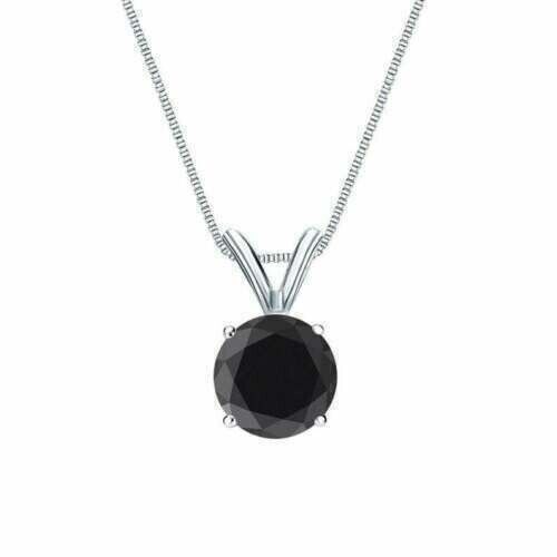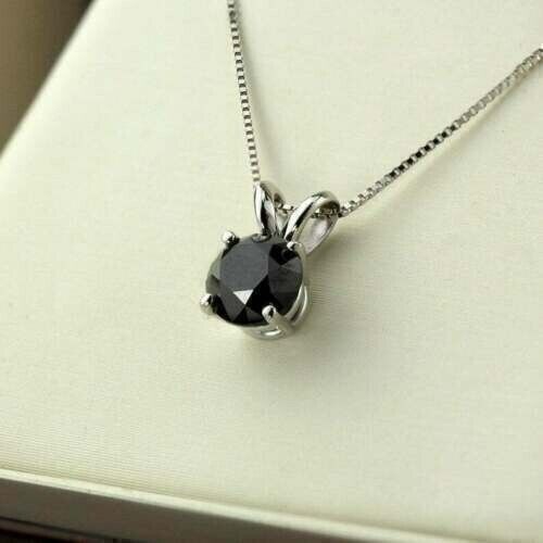2.50Ct Round Cut Black Cubic Zirconia Women's pendant 14K White Gold Plated