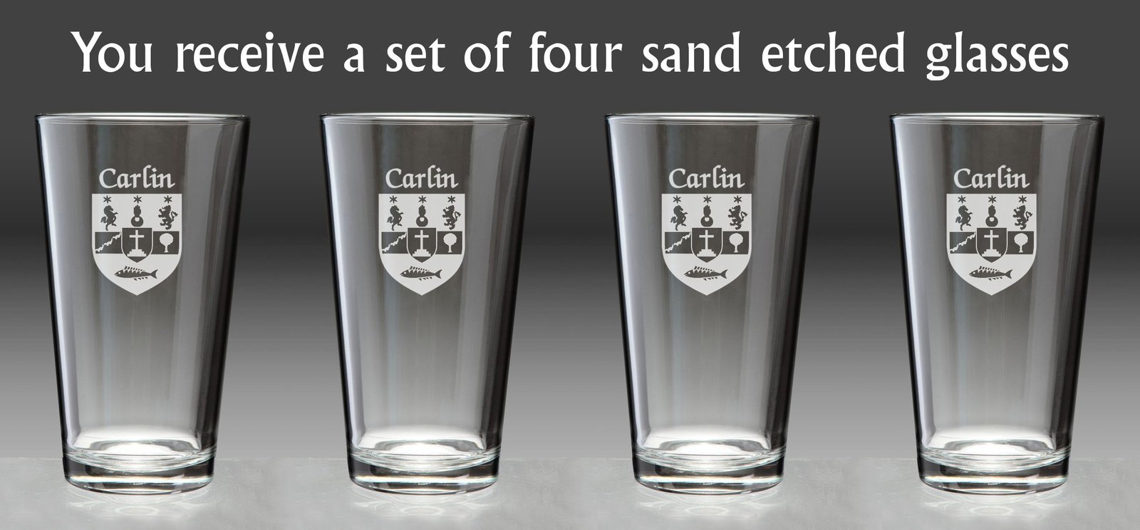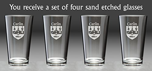 Carlin Irish Coat of Arms Pint Glasses - Set of 4 (Sand Etched) |