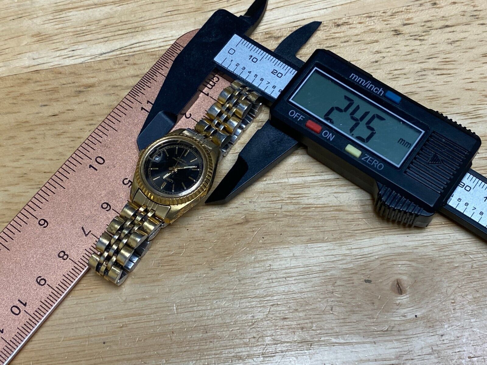 Watch dimension and size: please review the last image for size measurements. Shown on caliper is the approximate watch width in mm without crown or button.