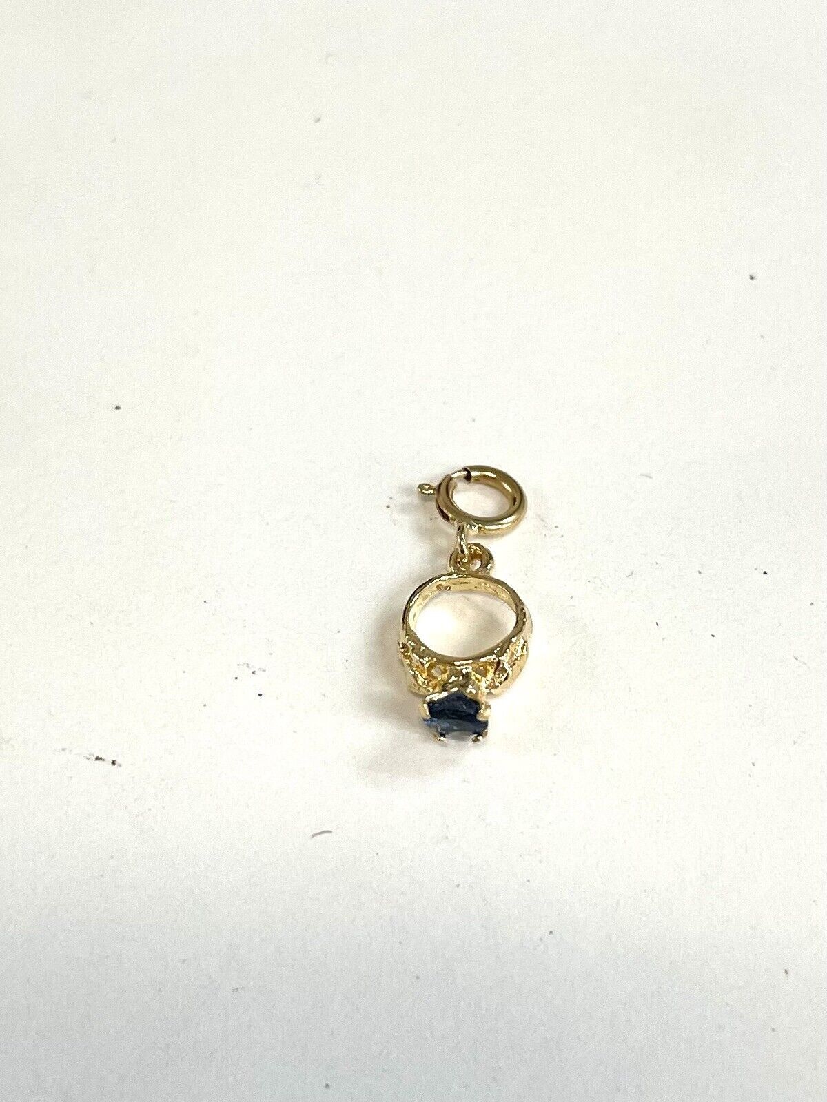 Solid 18k Yellow Gold / Blue Crystal Tiny Ring Charm With Spring Clasp.