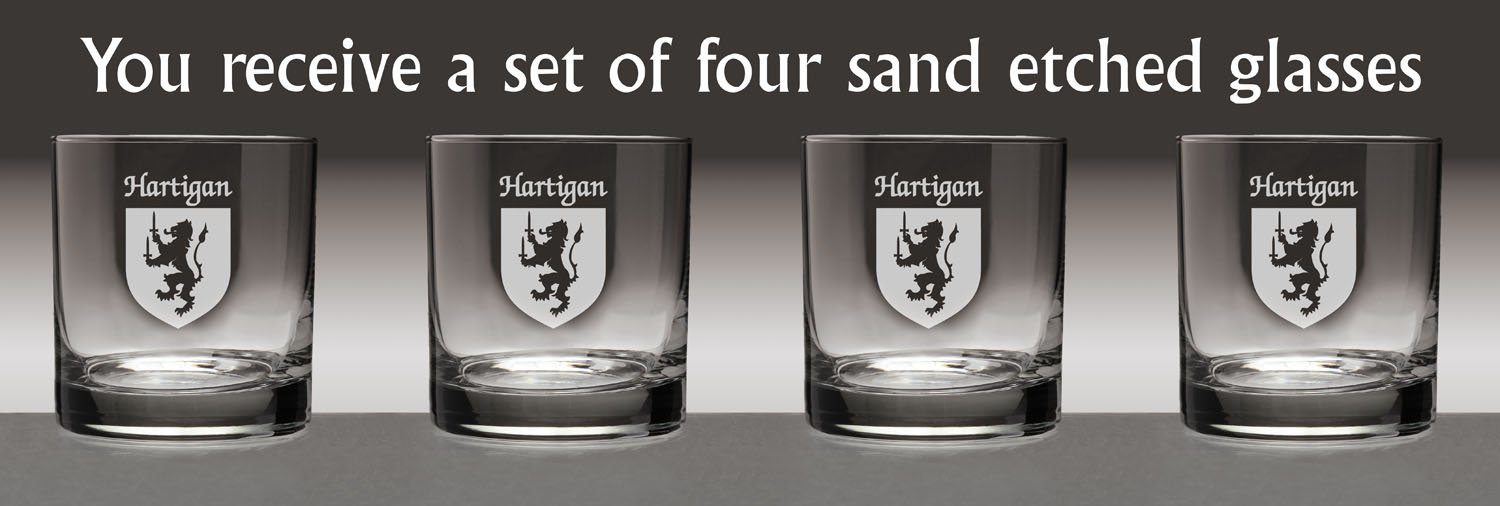 Hartigan Irish Coat of Arms Tumbler Glasses - Set of 4 (Sand Etched) |
