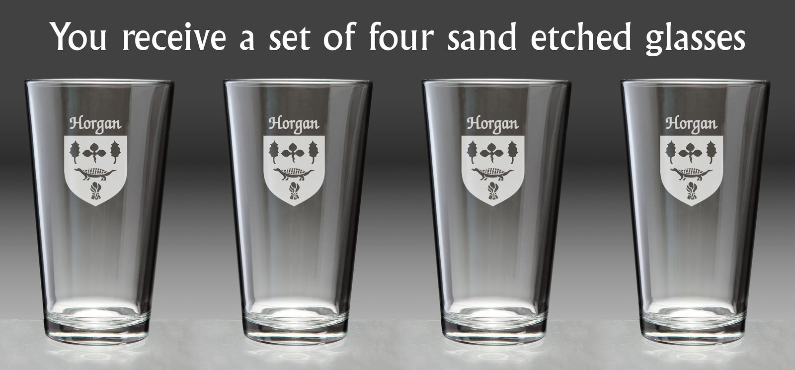 Horgan Irish Coat of Arms Pint Glasses - Set of 4 (Sand Etched)