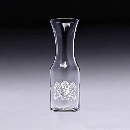 Kinney Wine Decanter with Irish Coat of Arms - (Sand etched). Bring classic, elegant style to your tabletops with this beautiful 1 liter glass decanter. It's certain to please with its flared top and graceful shape, making it a great fit any time for any meal. Whether you're looking to elevate the presentation of your breakfast beverages or you want to find an alternative to leaving wine bottles on your tables, this decanter delivers! Its chip-resistant rim helps ensure reliability by providing support at the weakest point. Irish Rose Gifts can sand etch over 1000 Irish family names and authentic coats of arms. A perfect wedding, groomsman, reunion, any-occasion gift. Authentic Irish coat of arms. Glass wine decanter - 33.875 oz. (1 liter) glass decanter. Ht-10 3/4, Bottom-3 5/8, Top Dia-3 d 3/4. Rim-Full Capacity 40 oz. High quality permanent sand-etching.