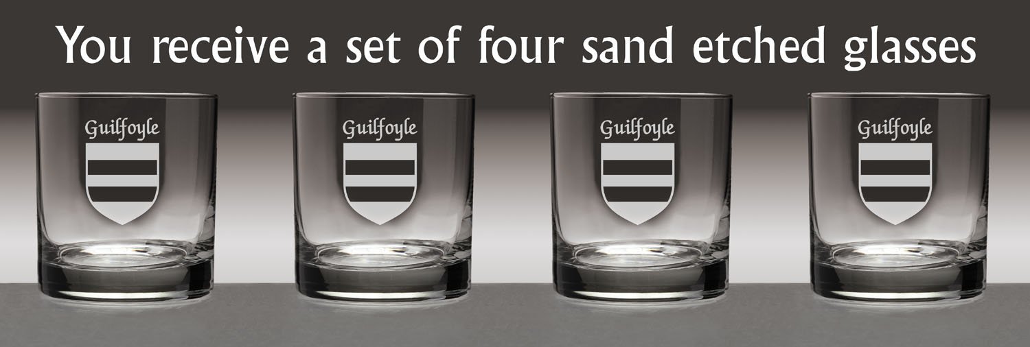 Guilfoyle Irish Coat of Arms Tumbler Glasses - Set of 4 (Sand Etched) |