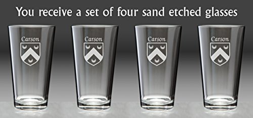 Carson Irish Coat of Arms Pint Glasses - Set of 4 (Sand Etched) |